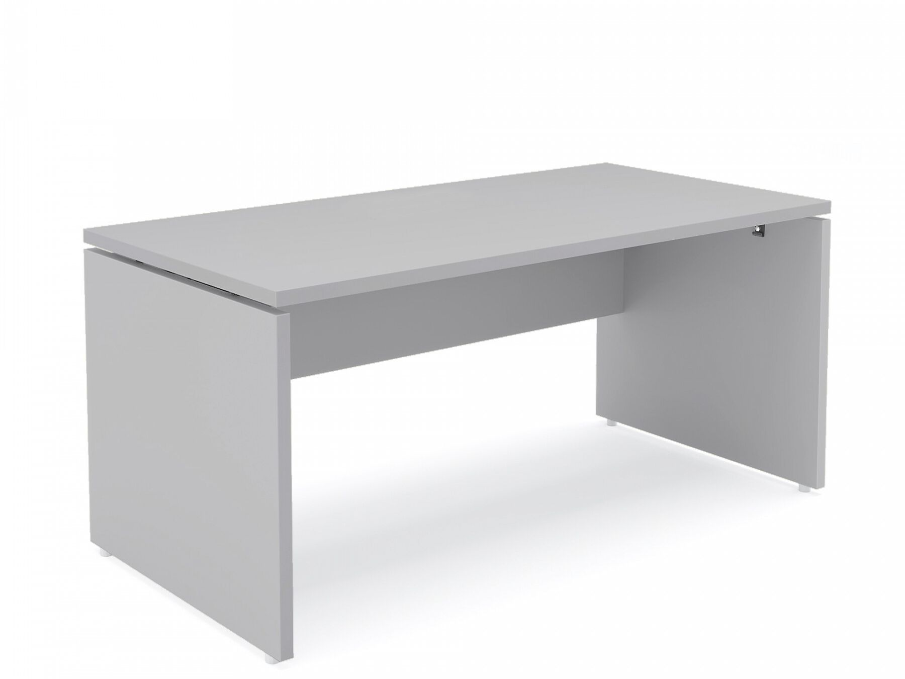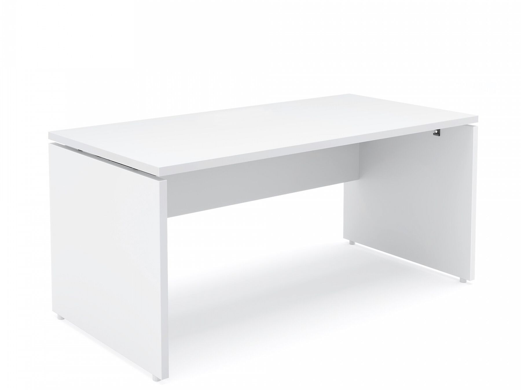 The collection also includes a series of 18 mm thick melamine frontal panels which, by means of suitable pairs of clamp brackets, can be made integral with both single desks and consoles, and desks and consoles in bench configuration.
