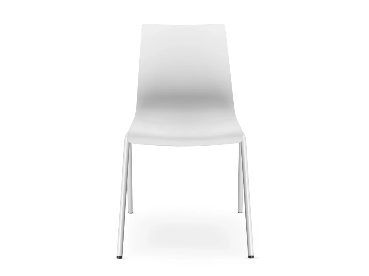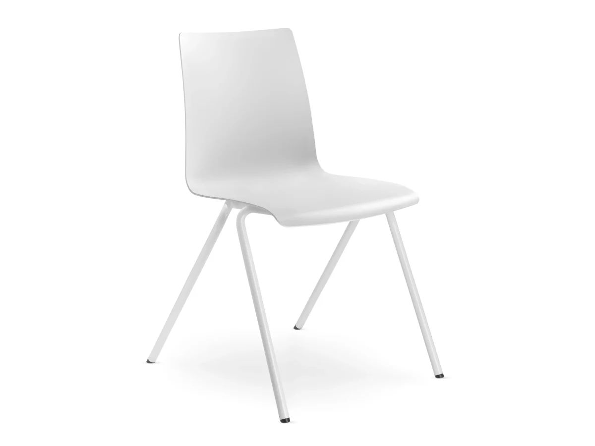 EVO 010-N0 is a stackable conference chair with a plastic shell (matt inner texture, high-gloss external part), upholstered seat pan, without armrests, easily replaceable plastic gliders, glossy black powder coated (RAL 9005) 4-leg steel base.