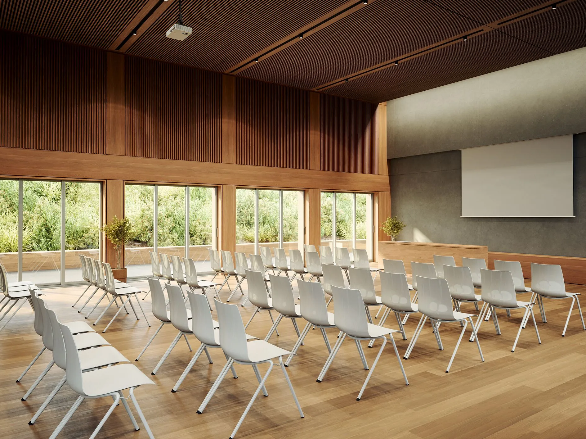 The EVO conference chair series by German designer Andreas Krob is distinguished by its functionality, versatility and minimalist design. These chairs have a plastic shell which can be supplemented with an upholstered seat. The base is made either of steel with armrests added optionally or oak. EVO chairs are stackable and can also be joined into rows. They are especially suitable for conference halls, offices, waiting rooms as well as modern cafs.