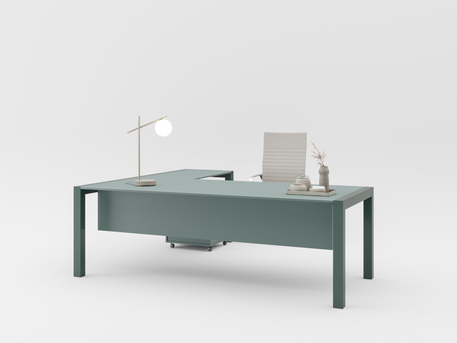 With a special dedicated leg, the desk is offered in an extension version, which acts as a convenient extension of the top, to which can be added a pedestal drawer on wheels in matching finishes.