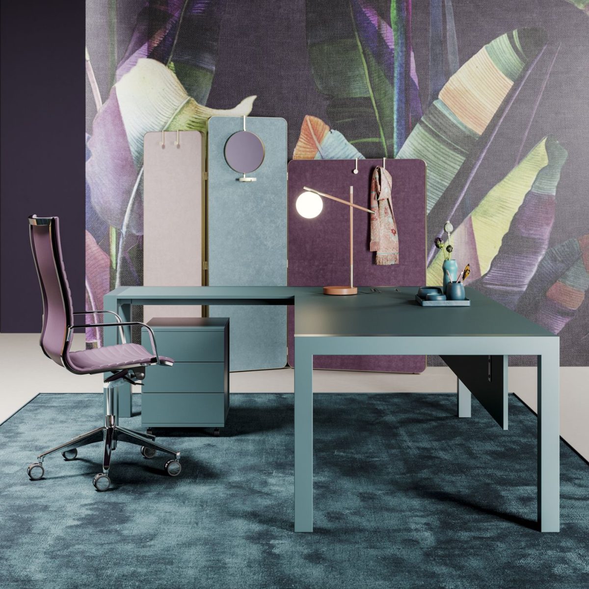In the wide palette of colors and finishes it is possible to combine a single shade with all the elements and surfaces of the desk for a tone on tone mood.