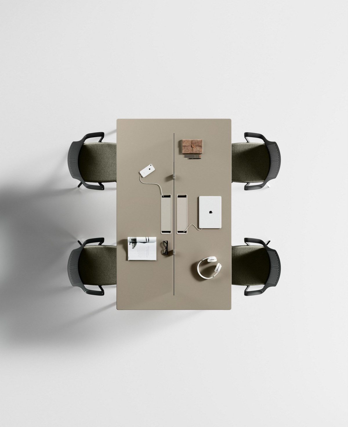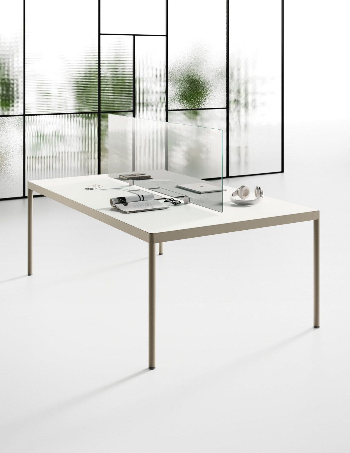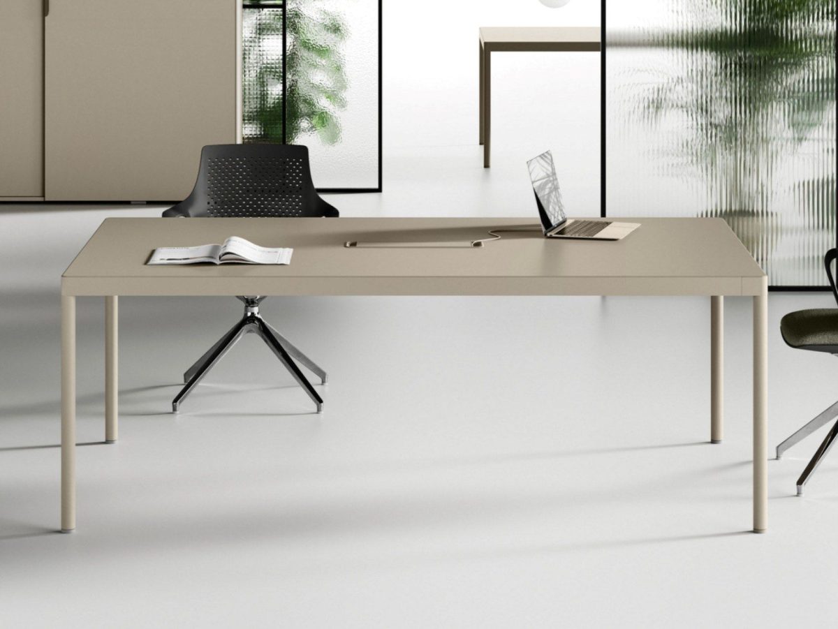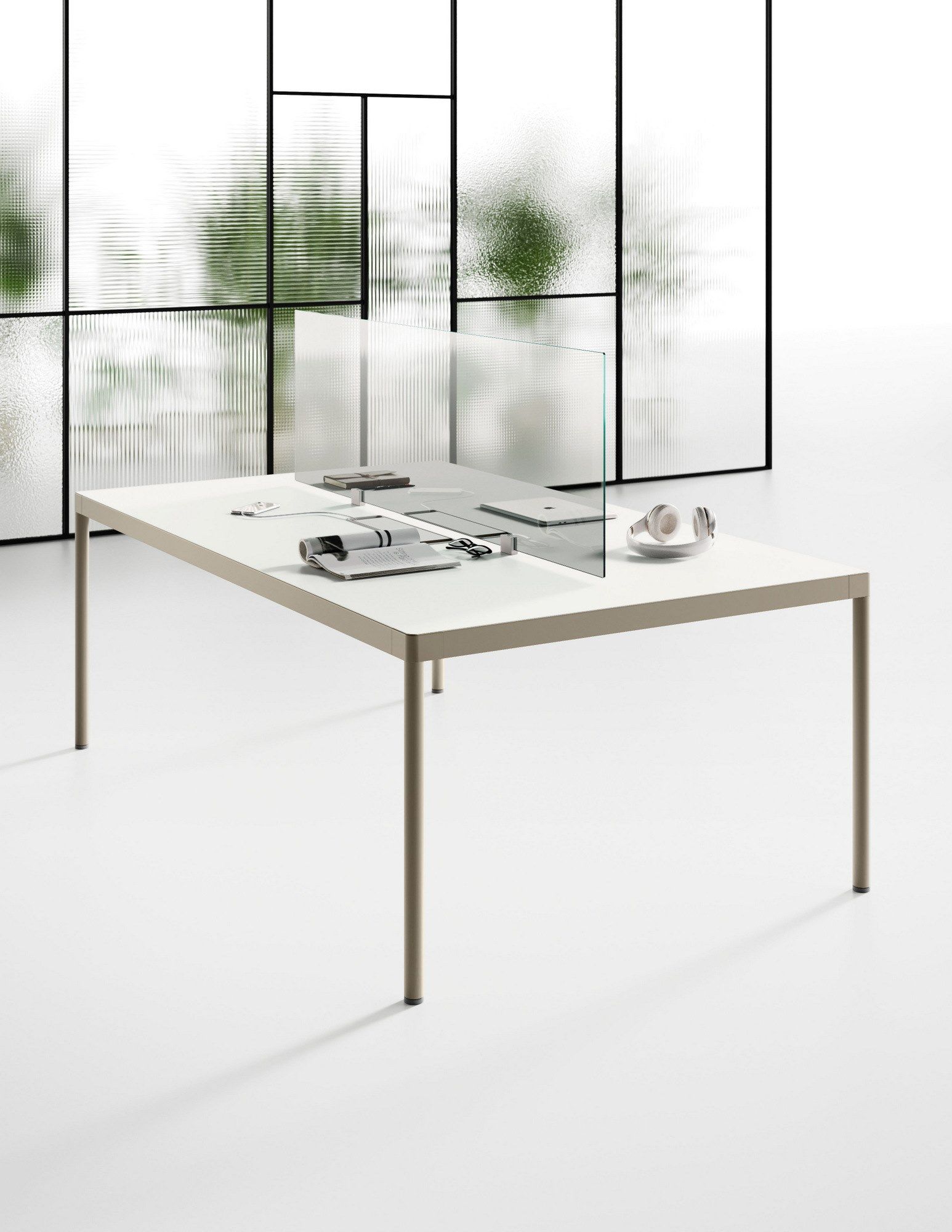 Fil Rouge is a new collection with a transversal use intended for executive and operative offices and meeting rooms. The aluminium perimeter frame, the flush-mounted 3D foil top, the rounded edges strongly characterize its design.