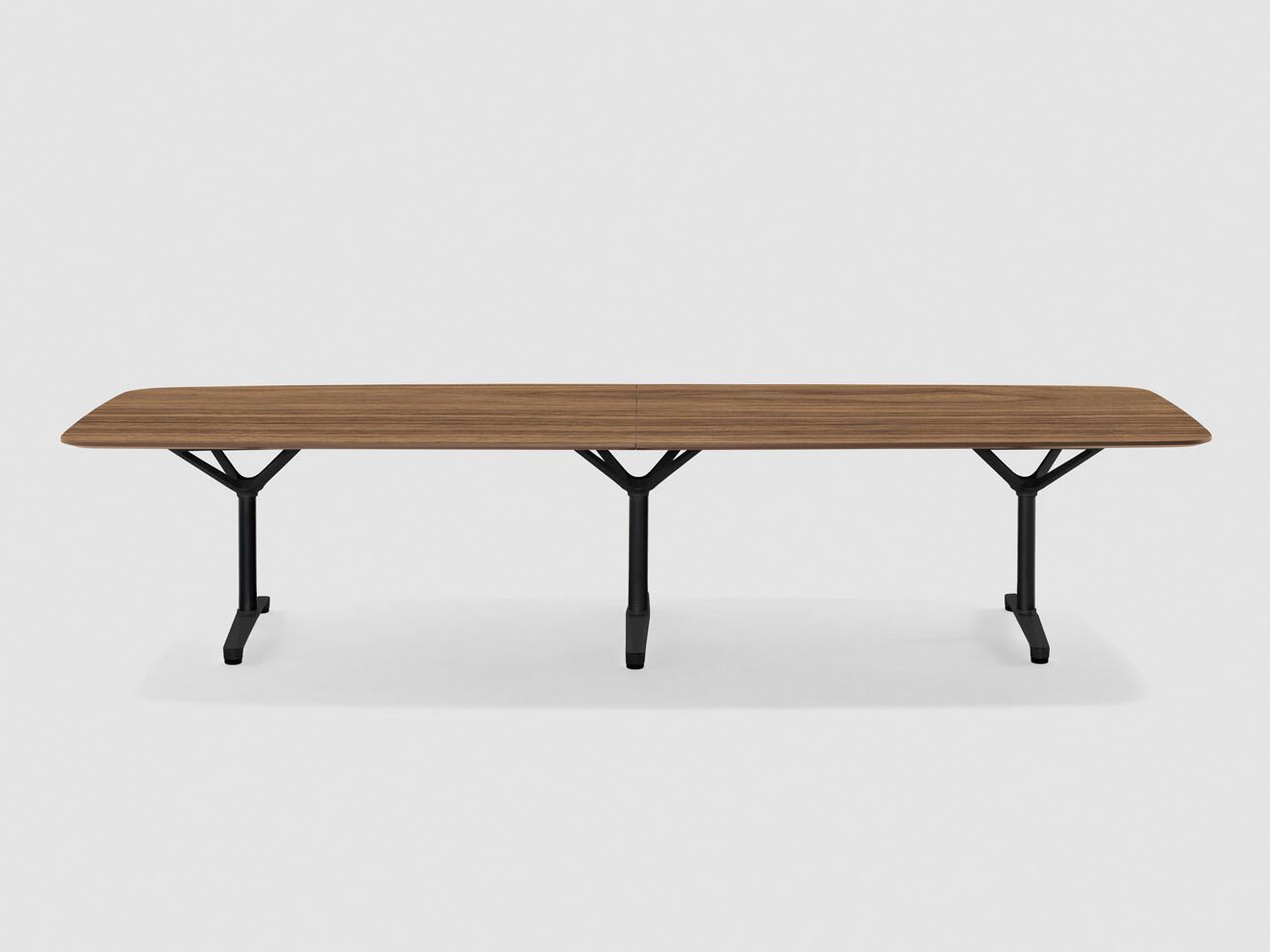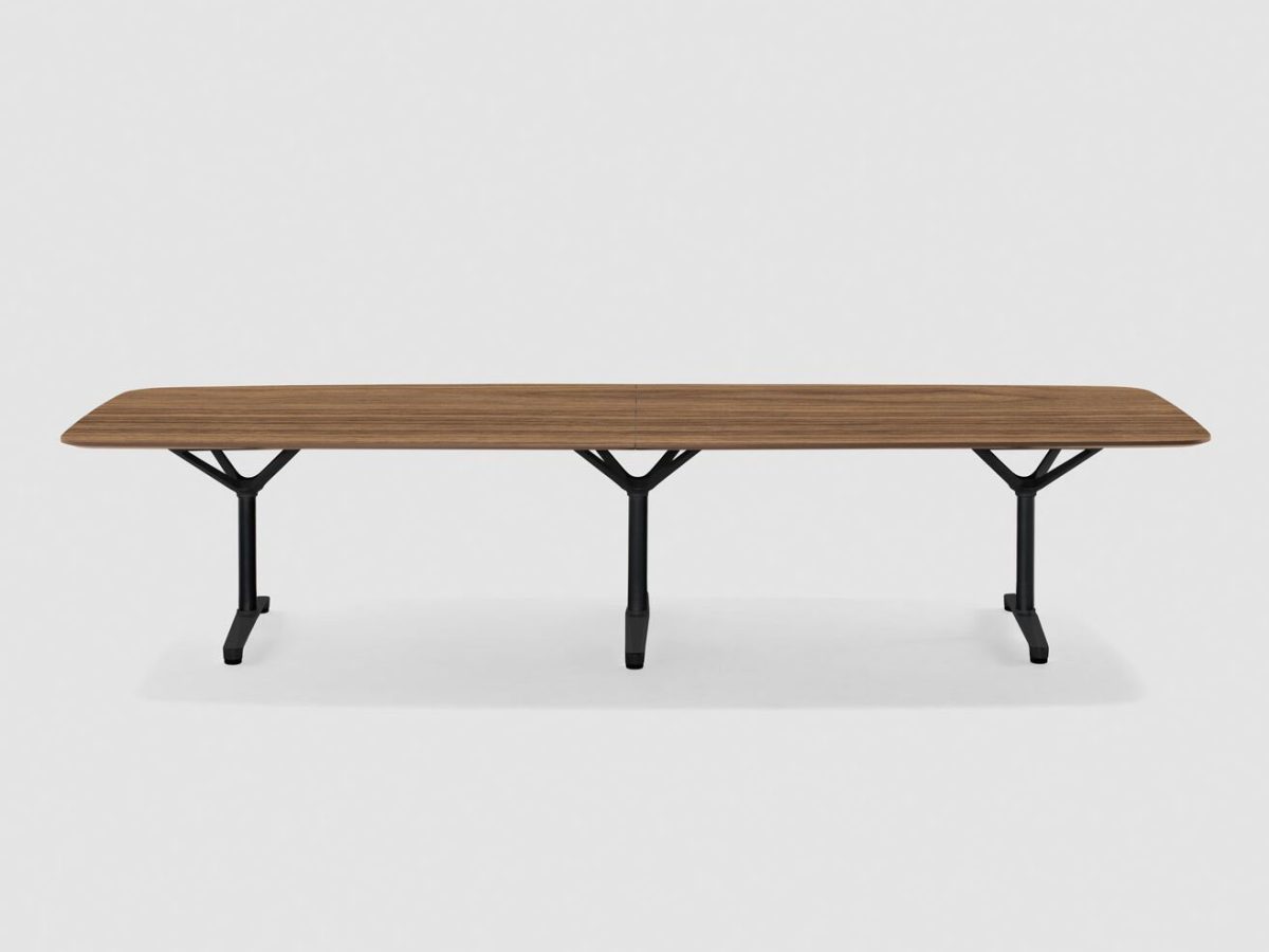 The FILO Table embodies tranquility and elegance with its simple design and high-quality materials. The frame is made of polished aluminum or black matt powder-coated, combined with fine veneers. It is perfect for confidential conversations, conferences, and meetings. The FILO Table can be harmoniously combined with the FILO Chair. Various veneers and textured finishes are available for the tabletop. The base is made of polished or black matt powder-coated aluminum die-casting.
