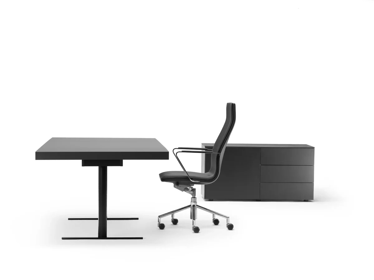 The geometrically arranged plates lead here to a harmonious collective. As Desk set, flair shows a modern approach with objectivity and a pure, certain clarity. The soft-looking surface gives contrast for a pleasant feeling. Move the limits of the ordinary with a clarity of this executives office.