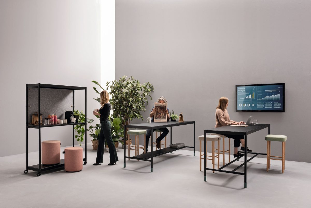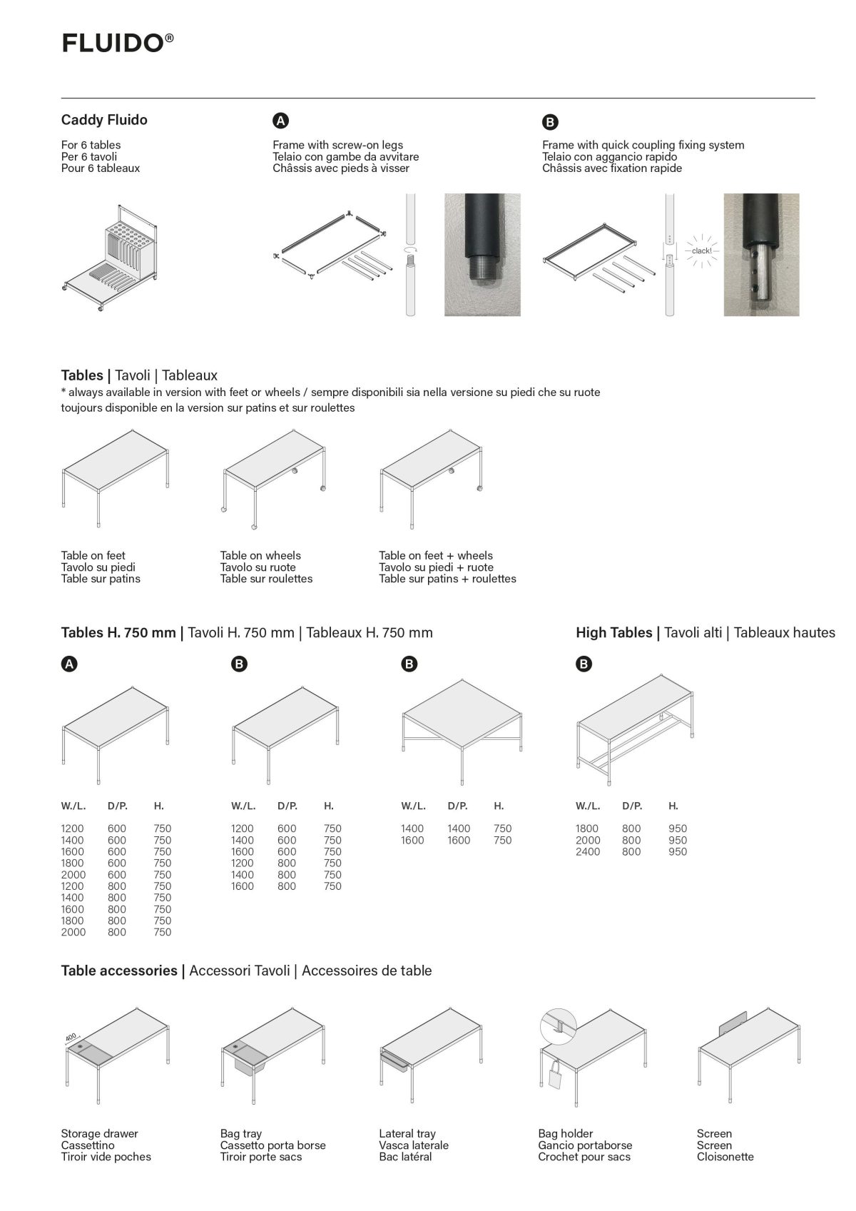 Fluido is a programme that allows you to create completely modular, customisable and flexible environments. All imaginable ways of furnishing increasingly hybrid spaces become reality with Fluido. The system is composed through a new concept of assembling structures, creating infinite solutions: tables, bookcases, trolleys up to compact modular kitchens fit for any place; at home as well as in the office, in public and private areas, formal and informal, for outdoor or indoor spaces.