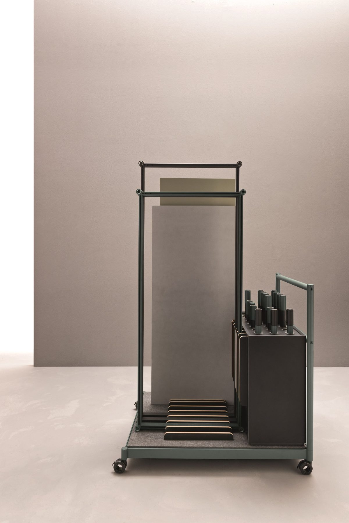 The concept of Fluido starts from the practical observation of architect and industrial designer Daniele Del Missier on the work table where he usually develops his projects: in what might seem to be an “operating disorder”, the table is instead divided into areas with more or less defined boundaries. From here comes the idea of delimiting the space into areas with more precise and specific physical boundaries, to make operations more orderly and effective.