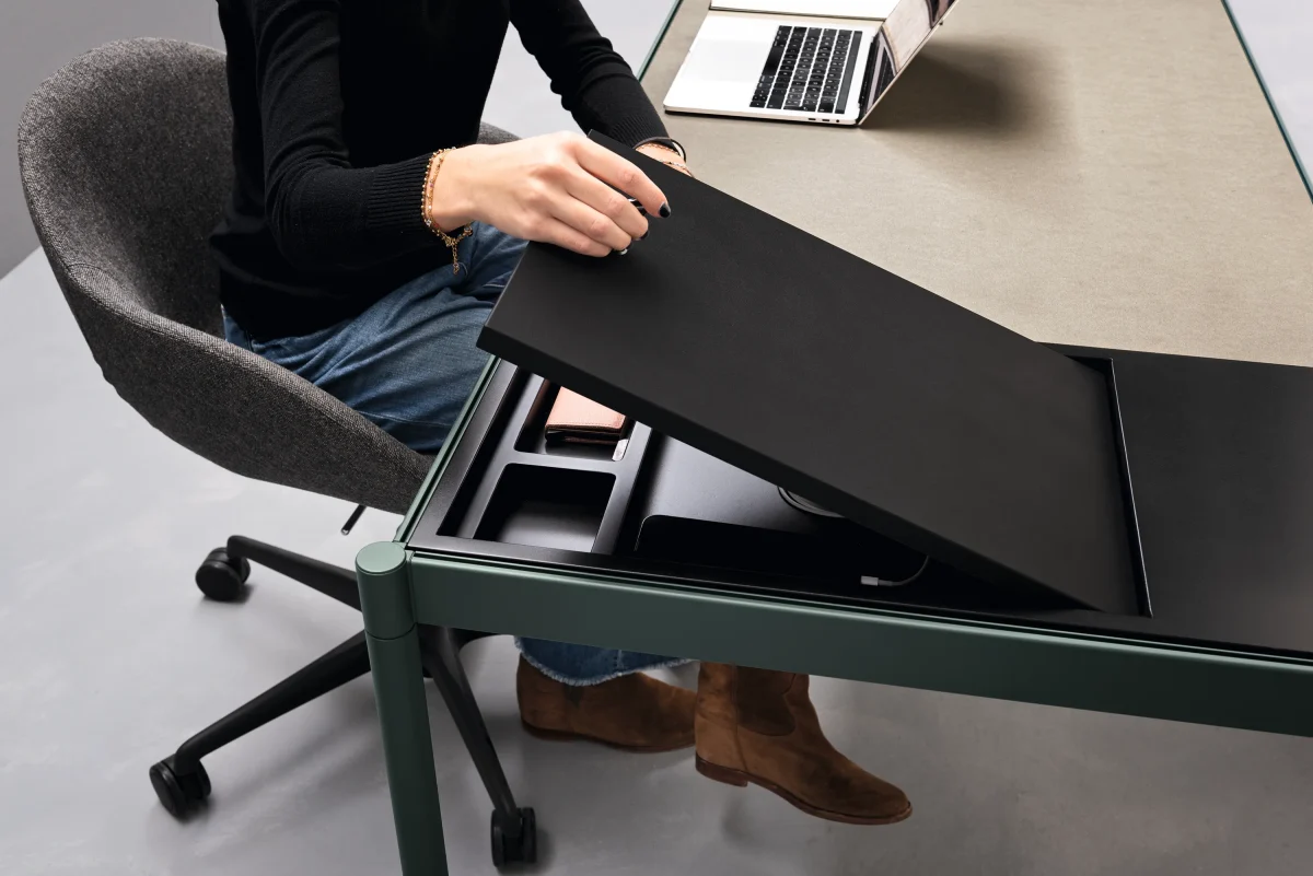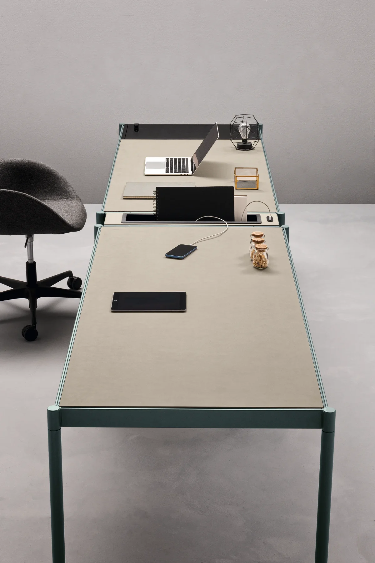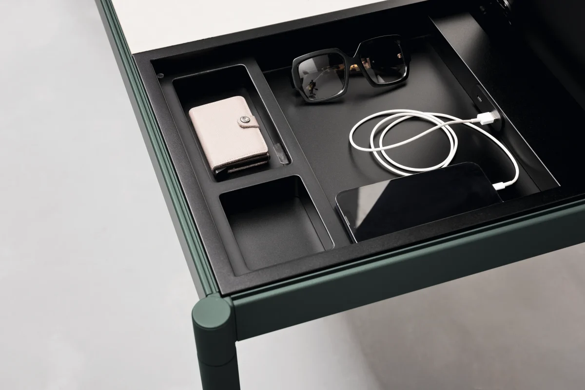 The concept of Fluido starts from the practical observation of architect and industrial designer Daniele Del Missier on the work table where he usually develops his projects: in what might seem to be an “operating disorder”, the table is instead divided into areas with more or less defined boundaries. From here comes the idea of delimiting the space into areas with more precise and specific physical boundaries, to make operations more orderly and effective.