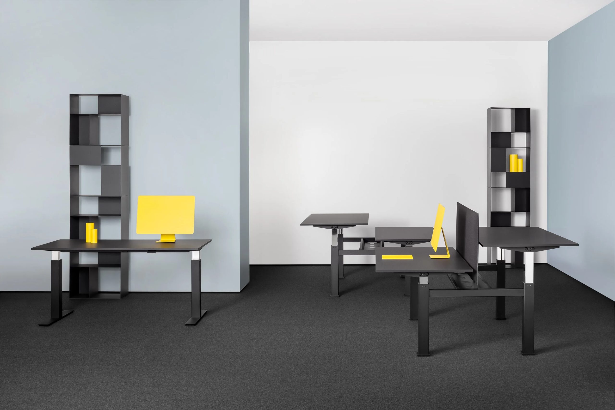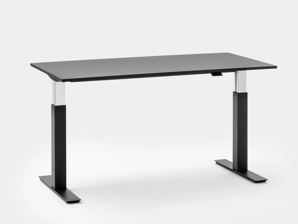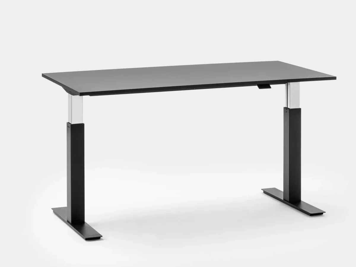 FOLLOW is height-adjustable table that effortlessly and noiselessly adjust to the users posture and need. Single working desk with painted metal frame, available in different sizes from 1200 to 1800 mm width. Height adjustment handle in reinforced nylon. Available with multifunction unit for electrical wiring integrated in the top and with cable tray. A table that can be placed and moved anywhere: it is not connected to any cable as it does not need any electricity supply.