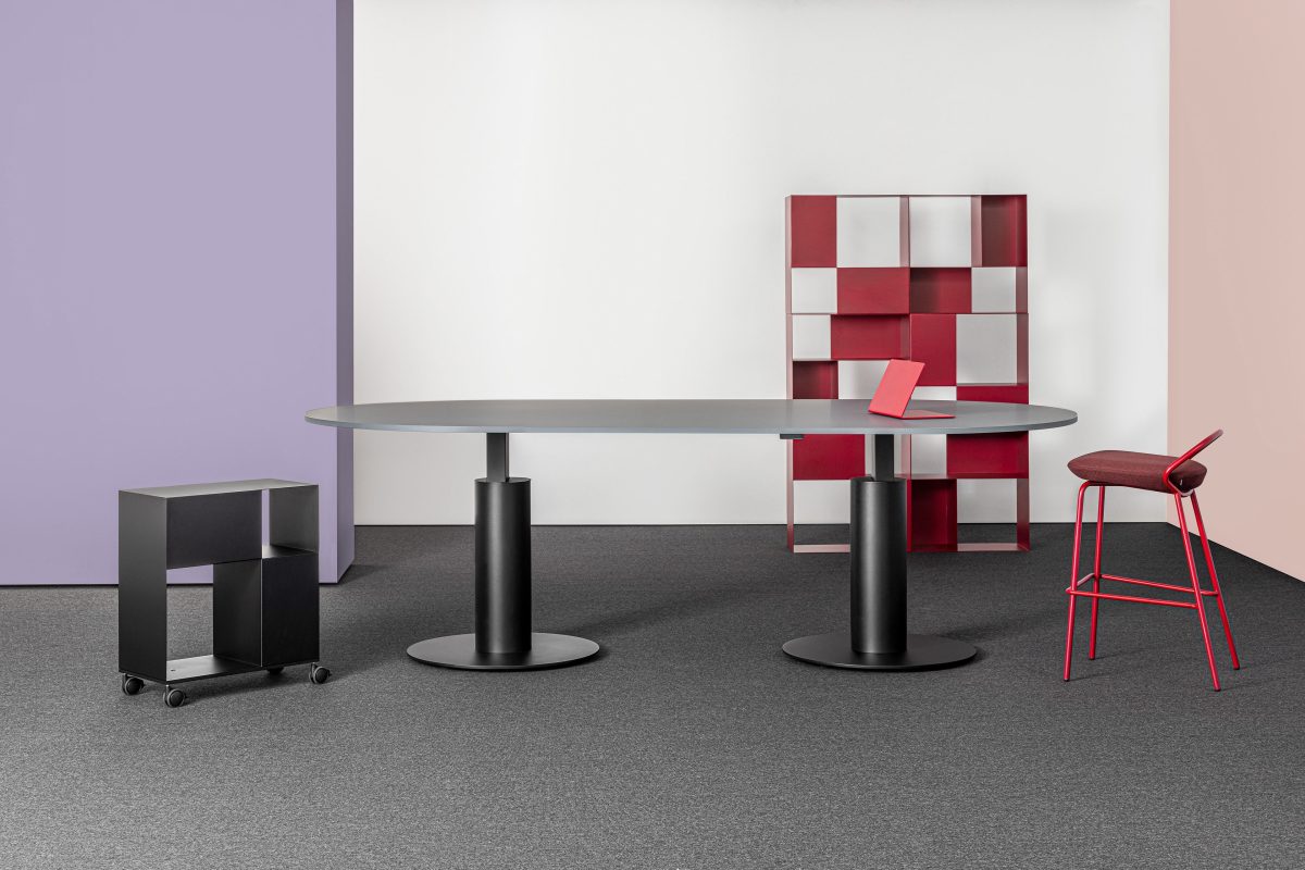 Follow Meeting Large is a sit-stand table for conviviality. No-gravity is the name of Maras innovative patented system to adjust the height of a top as big as 28001400 mm, with a simple touch. An intuitive, quick and silent regulation. 100% recyclable (and sustainable) Follow Meeting Large fulfills the requirements of ergonomy and comfort for working as well as domestic environments. Sturdy and steady the structure of the table comprises a twin base in powder- coated steel and an integrated cable tray. An array of colours and finishes let this table be customized in multiple combinations. The fully mechanical height- adjustability system does not need electricity or gas-lift pumps allowing the table to be positioned anywhere within a room. This innovation has earned Follow the Seal of Excellence from the Reaserch and Innovation Program of the European Unions.