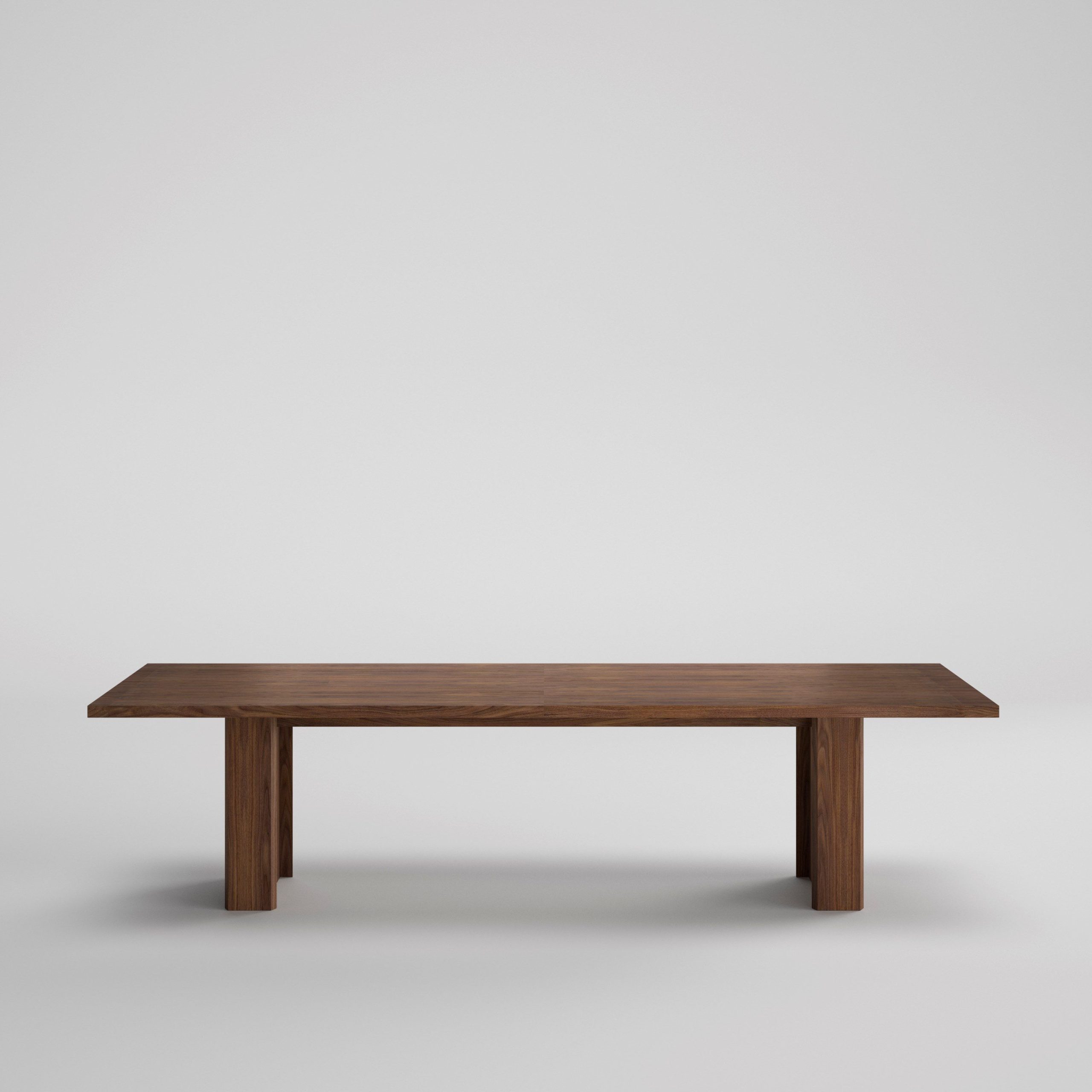 Legs are made in a 90 miter with folding on a 40 mm MDF board thick veneered with natural veneer and 2 mm American walnut wood edge. The table has a cable tray made of MDF board 20 mm thick and natural veneer with 0.5 mm American walnut wood edge. Customizable for projects.