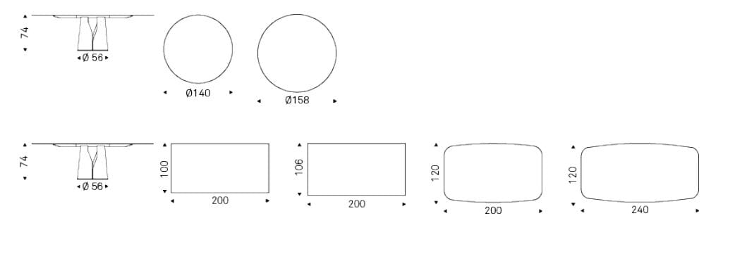 Giano is available in various shapes, sizes and materials: the standard version is a modern round or oval table, with wooden or marble top. Giano CrystalArt is, on the other hand, a rectangular glass table, also available with contouring, with a fascinating decorative artistic print.