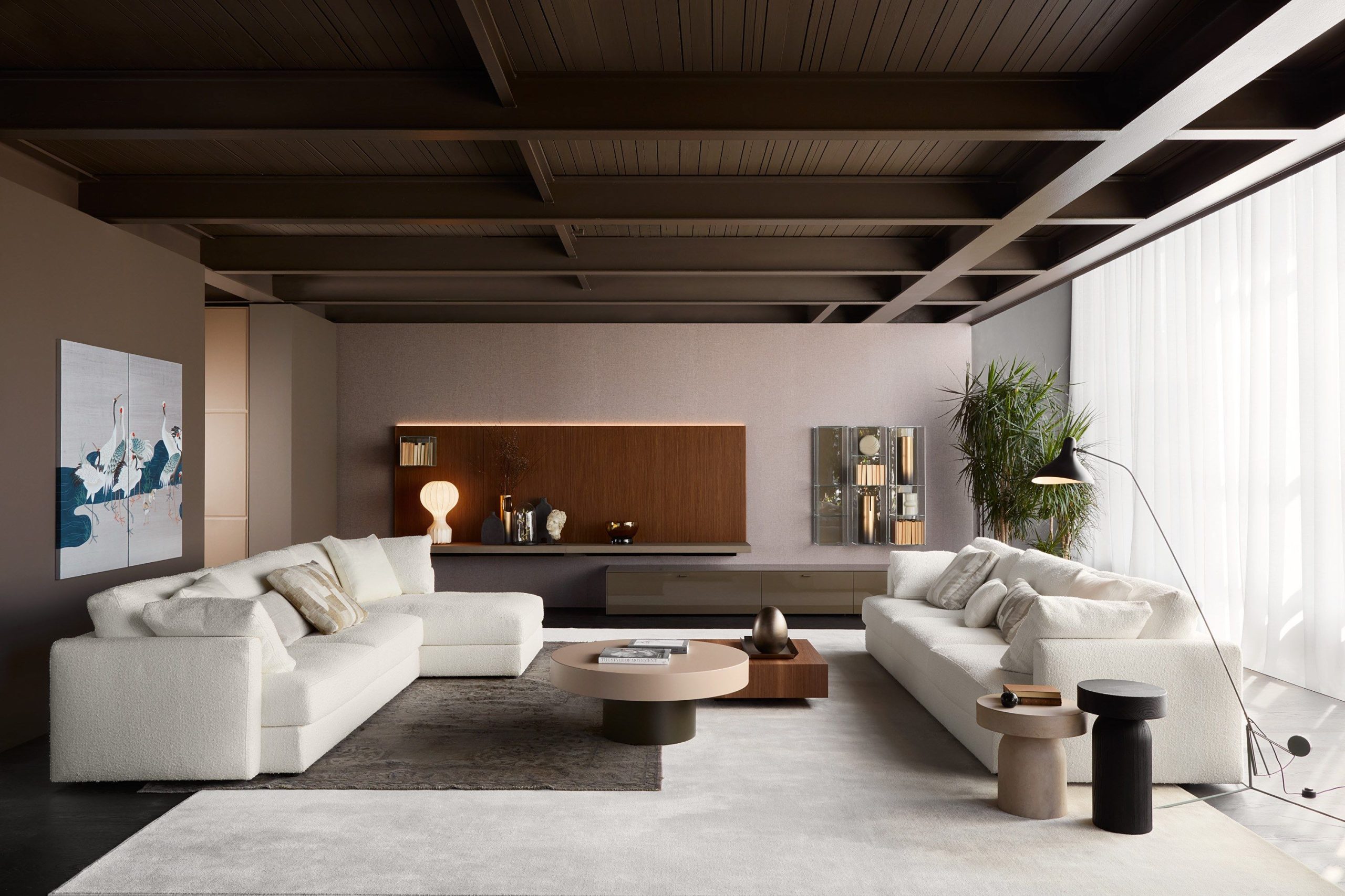 Glee is a modular free-standing sofa that stands out for its essential lines and soft volumes. Versatility is its distinctive trait: Glee is able to fit into any space and dialogue with any furniture style adding a touch of newness and contemporaneity to the whole space.