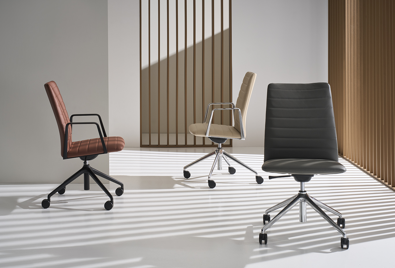 Greca executive chair embodies refined elegance and meticulous attention to aesthetics without sacrificing comfort and quality. Horizontal stitching accentuates the chair’s graceful lines, adding character and combining design refinement with a sleek, modern aesthetic. The chair offers quality comfort, blending elegance and practicality. It is soft and provides ideal support without compromising the design.