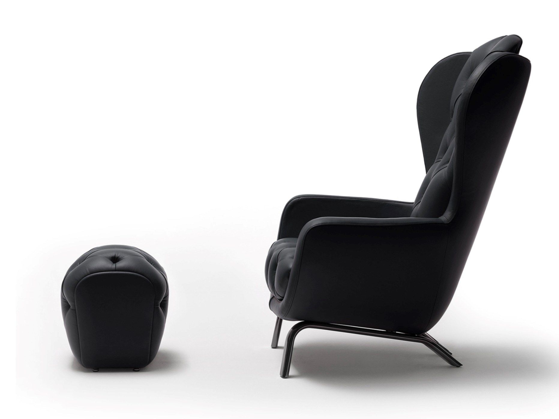 A cozy and comfortable bucket seat, a reassuring form with absolutely contemporary details: these are the main features of Guelfo, the wingback designed by Lapo Ciatti. Guelfo wingback and footstool were launched in 2015 with the aim to give a new, refined and innovative (sometimes ironic) style to the 18th century French archetype and like all the other pieces presented that year, they find source of inspiration in the Middle Ages and in the process of overcoming common knowledge.