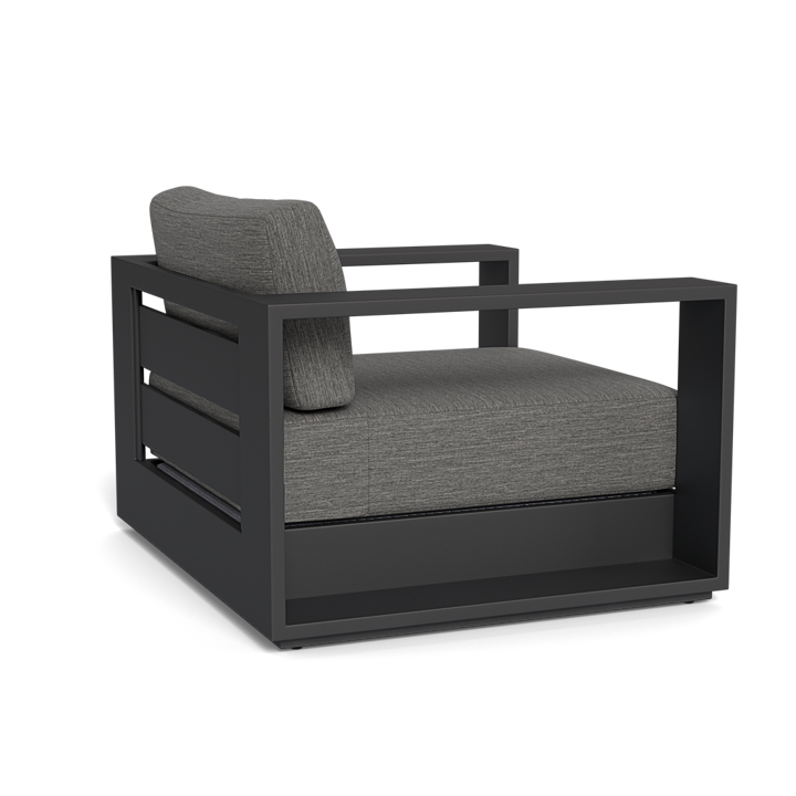 Our Hayman collection is a statement in simplicity with clean angles and modern styling. Defined by its wide arms, our low–profile Hayman Lounge Chair was designed to be experienced — sink into ultimate relaxation with a cushion for deep seating available in a range of neutral tones supported by a Batyline sling suspension in White or Silver for added comfort, all crafted in a powder coated extruded aluminum frame available in White or Asteroid. Indoor comfort meets outdoor performance with this modern lounge chair made for a variety of patio and pool spaces. Pair it with an Ottoman to really kick back and unwind.