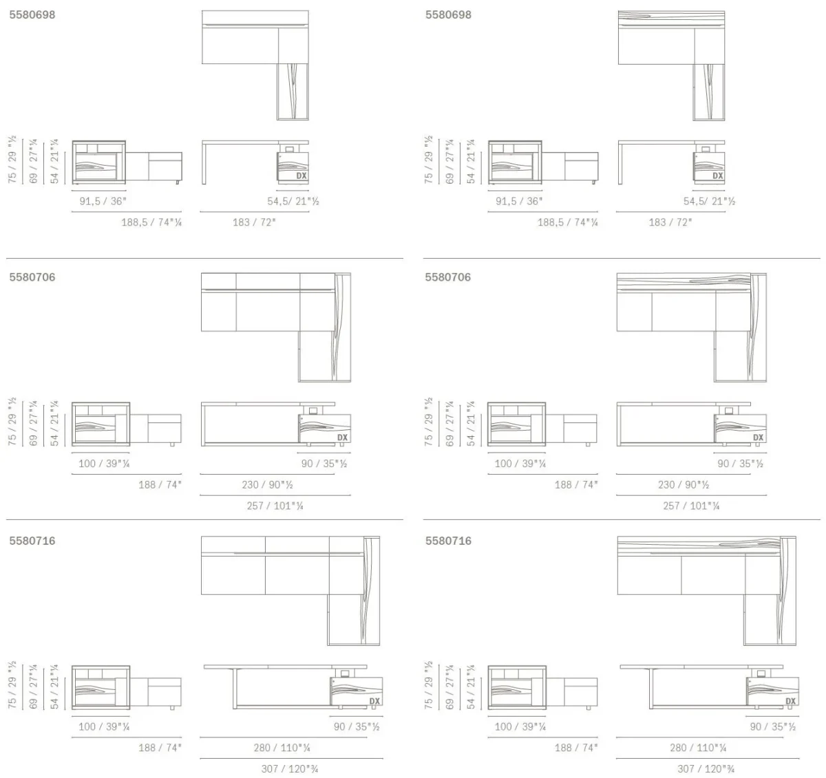 There are three versions of this desk: Jobs President Desk, Jobs Executive Desk and Jobs Easy Desk, each equipped with a wide range of accessories and variants.