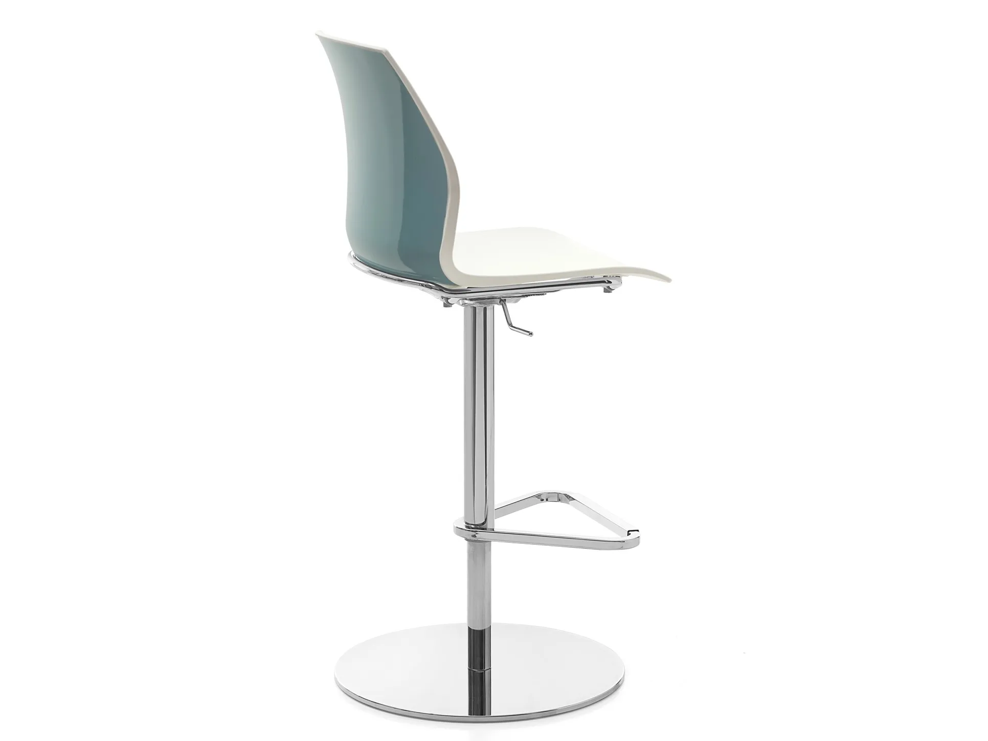 Kalea is a swivel stool with a polypropylene seat and steel pedestal base.