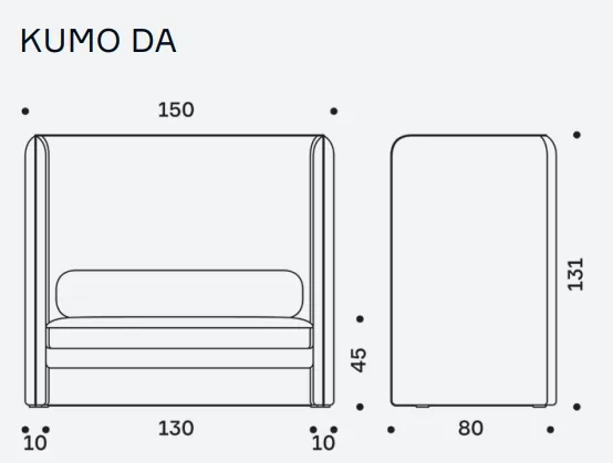 Refined and minimal appeal, attention to detail and modularity: Kumo is the high-back sofa designed by IBEBI to fashionably prepare professional spaces, without renouncing the flexibility that distinguishes modular furnishings. Kumos high backrest is enveloping and, together with the lumbar cushion, ensures unparalleled comfort, even in terms of acoustics. This high-back, two-seater sofa is made with non-removable fabric and is available in a vast choice of fabrics and colours to play with pairings in a pop or more classic direction. Ideal for modern offices, co-working spaces and relaxation areas, Kumo is the high-back sofa that enhances any professional setting with style and comfort. Its elegant and simple design is in fact aimed at experiencing environments naturally, maintaining a high level of comfort. By offering the quality and versatility required of contemporary work environments, the Kumo sofa embodies all the characteristics of IBEBI designer furnishings and is a solution for those who want to enhance work spaces, while at the same time improving the well-being of those who inhabit them.