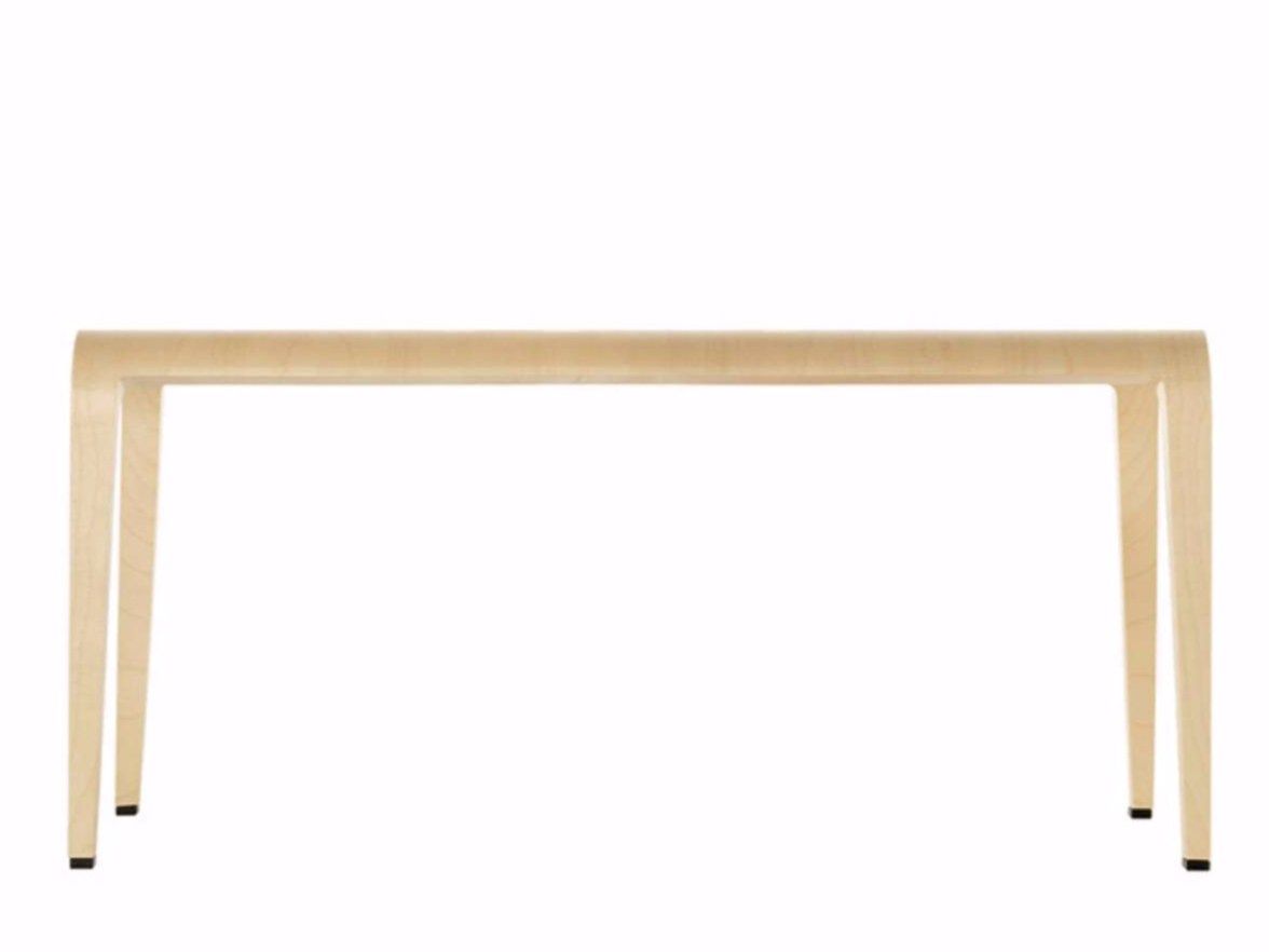 Bench with structure in solid maple or ash. Maple veneer, oak veneer, walnut or wenge; internal support in injected polyurethane foam. Finish in colored stains in various colors.