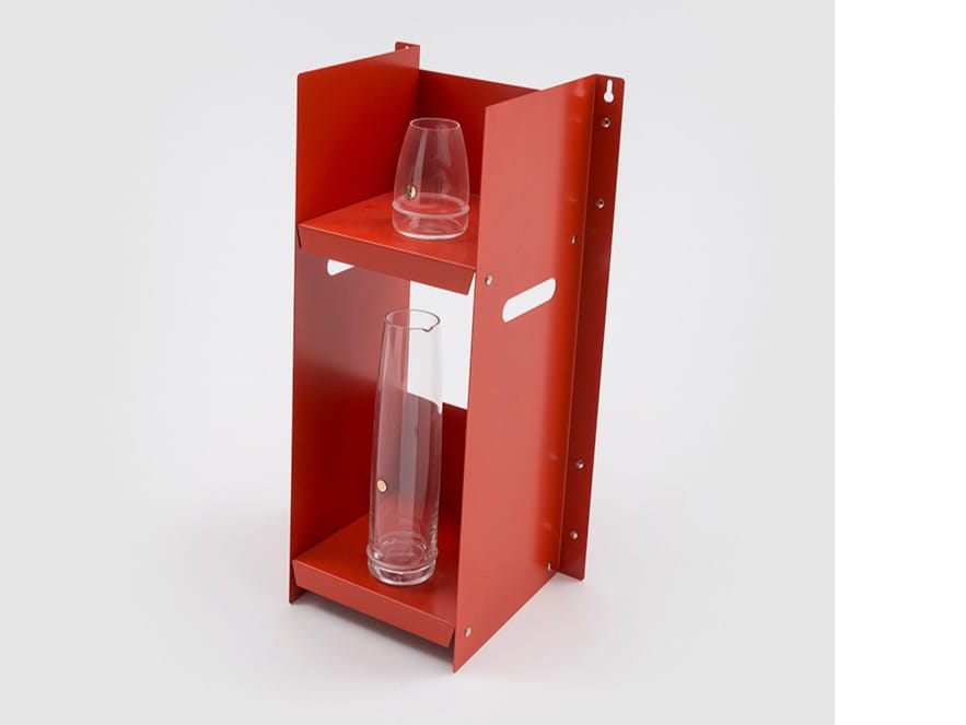 Livorno is a small bookcase with two shelves made in powder-coated metal. The design of the piece is minimal and is characterized by the simplicity of the form and materials used.