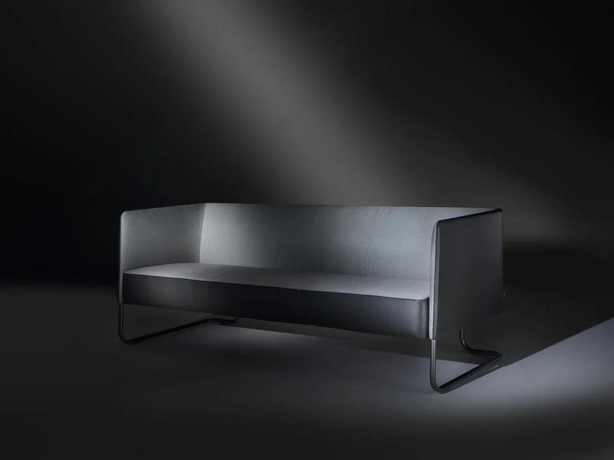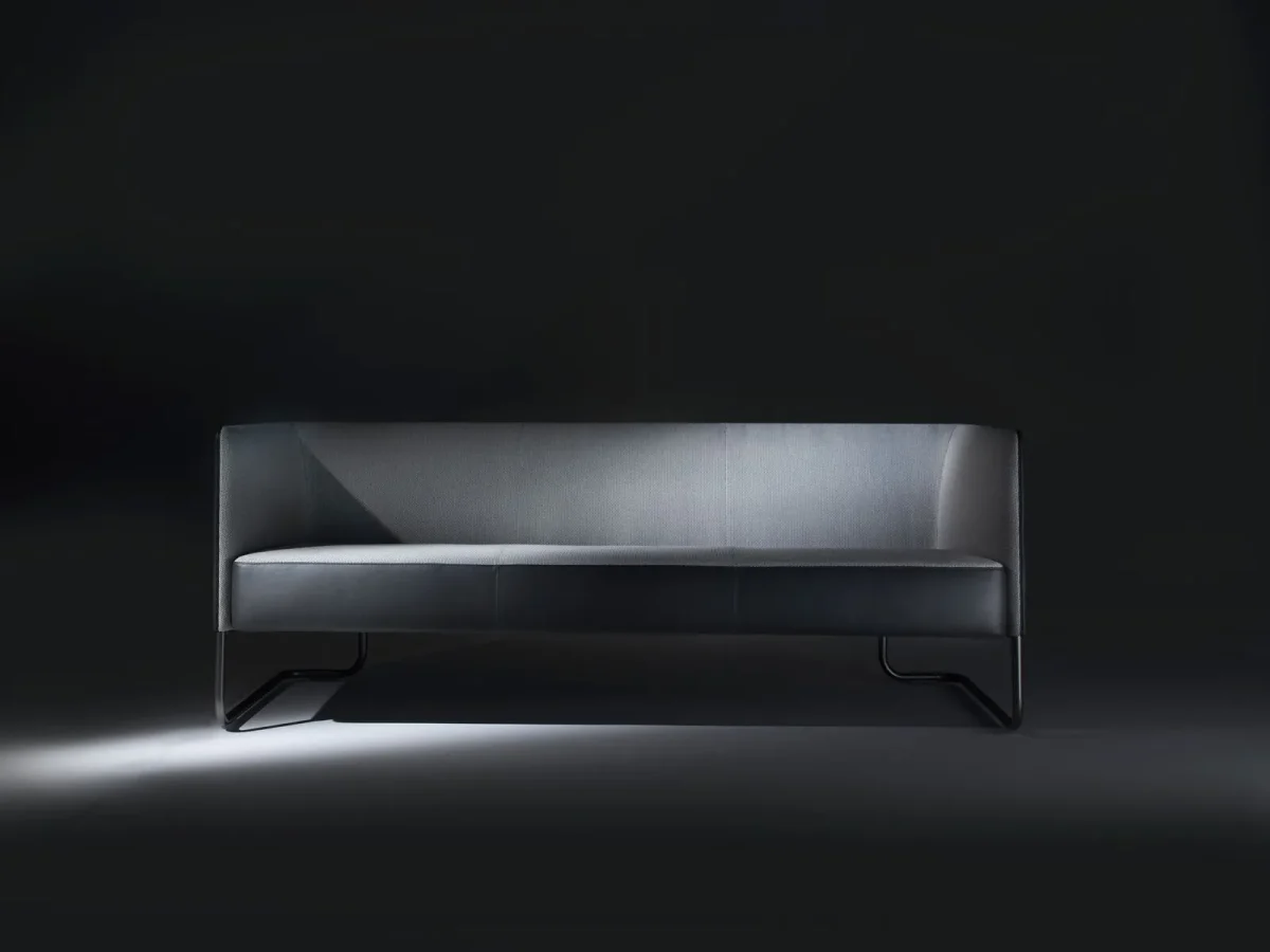 When I was asked to design a seat for the office area, I designed a sofa that could encompass simplicity of form, elegance and comfort says designer Umberto Asnago. The result is the Lounge armchair and sofa collection, characterized by the special workmanship of the structural rod integrated into the backrest. The base is made of solid poplar wood and the back is made of molded poplar plywood, both padded with polyurethane foam, while the base is in steel varnish in titanium color.