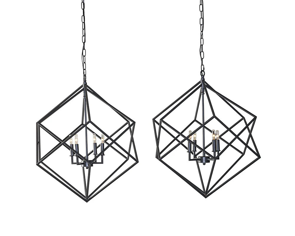 This chandelier from breathes industrial, contemporary style. The trendy yet timeless geometric black metal frame offers a focal point for your space.