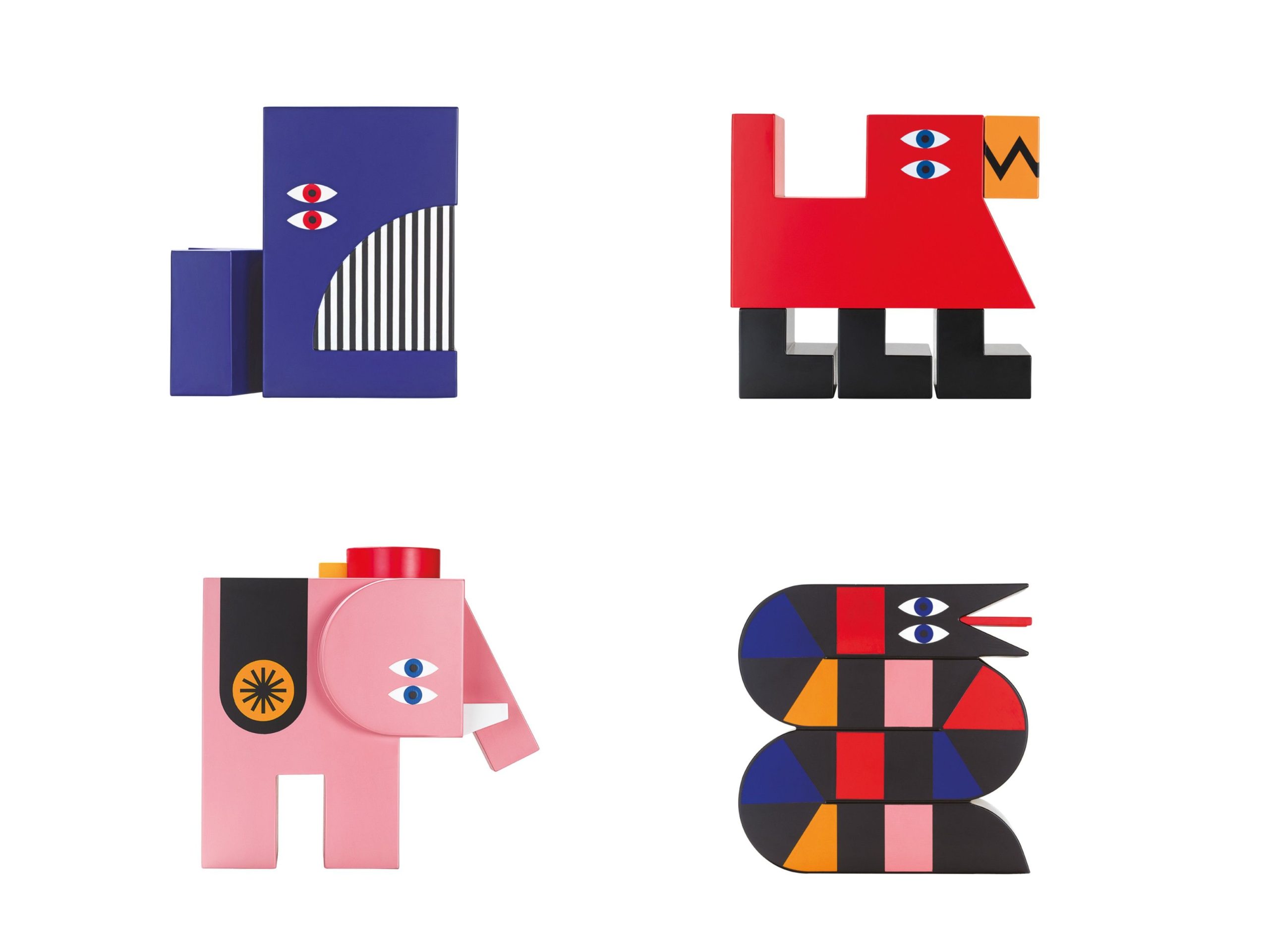 Qeeboo commissioned this project to the emerging multidisciplinary artist and designer Marco Oggian. His language is known for its iconic signs as well as for the primary color variety that he usually uses for his creations. The product family includes coffee tables, mirrors, carpets, doormats and vases, textile decorated products like cushions and poufs. «A collection that wants to pay homage to the monsters, creatures and all the different beings that make this world so colorful and wonderful» Marco Oggian.