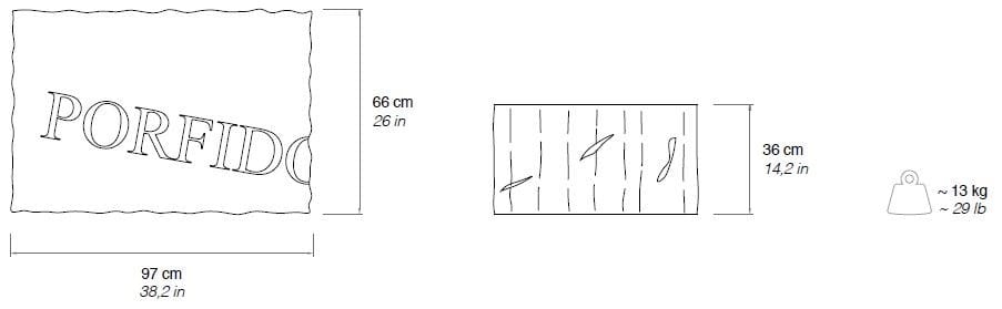Massolo is a block of “true-fake” porphyry that highlights the irony and love for the surreal that has always been one of the characteristics of Gufram’s production. Each Massolo is a unique piece, handmade by rough-hewing a block of polyurethane on which 12 layers of dripping paint in 8 different colours are applied to obtain the colour and the shining desired. The label PORFIDO on the surface – also made by hand – amplifies its surrealism.
