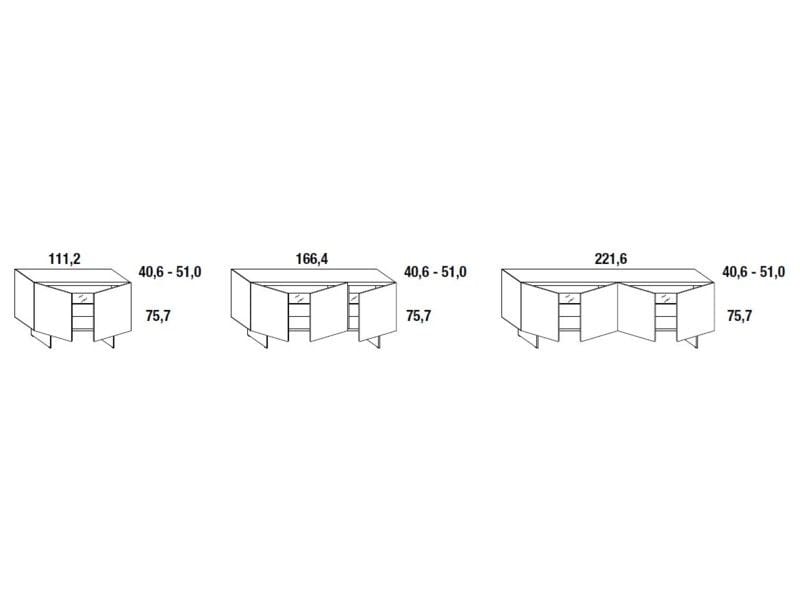 W 111,2/166,4/221,6 x D 40,6/51 x H 75,7 cm |