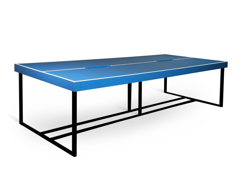 The MIIHI meeting table has been inspired by sports game courts. It has a sturdy metal base with PU finish. The table top features provision for flip top cable management mechanism. A number of color options is available to suit any interior space.
