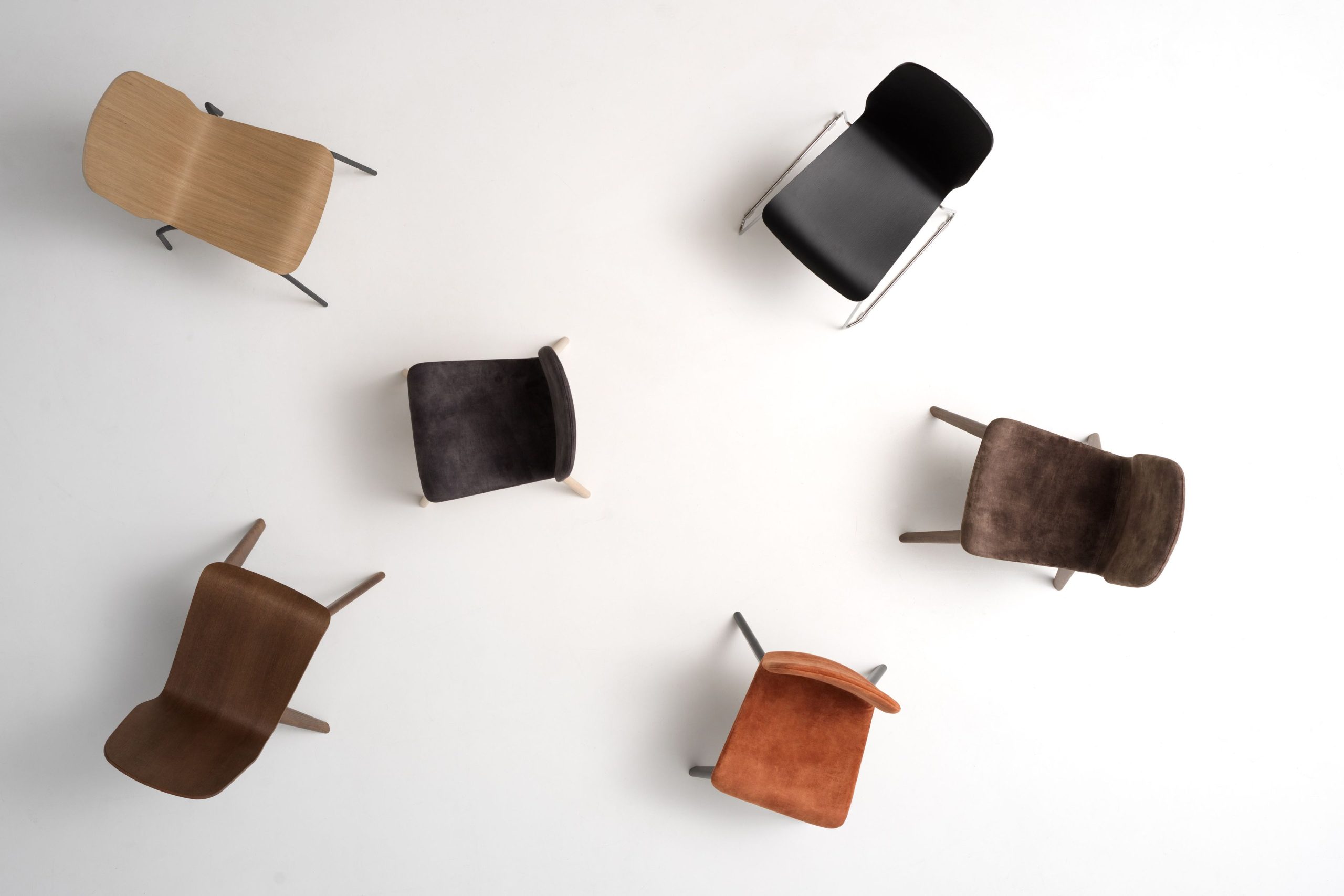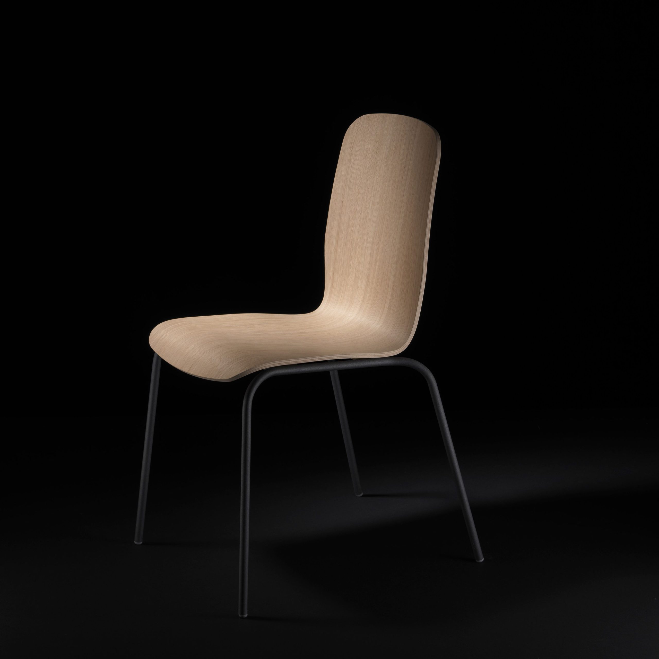 Mil is a chair with steel frame and a plywood beech shell, enriched with oak veneer. Perfect for dynamic and classy spaces.