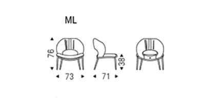 The small dining armchair is available in the Miranda Wood version, with a frame and legs in fine wood, as well as in the Miranda ML version, with steel legs that make the chair more slender and manoeuvrable.