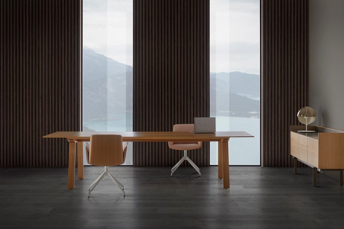 Mitis is a collection of tables with solid appearance and exquisite detailing in both table top and grooved legs. Supplied with height adjustable feet.