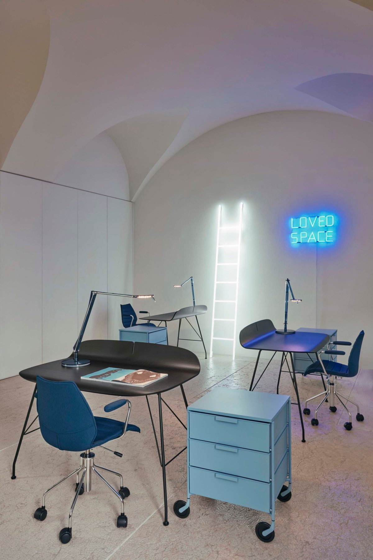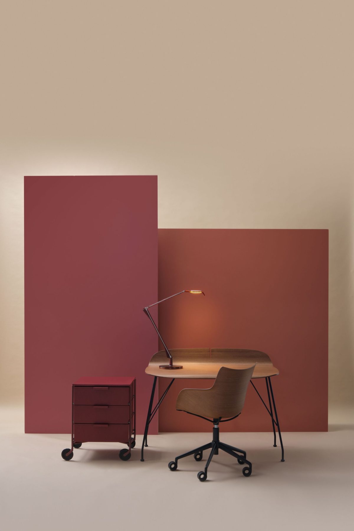 Winner of the Golden Compass in 1994, the Mobil chest of drawers is presented in a matt version in white, black, green, plum and light blue. The new edition is made of recycled industrial materials, and has the same robust construction and functionality as the original. The basic element of the system is the drawer, alternated with shelves and tops, connected by an aluminium structure. In this new finish, the structure is coloured and the wheels are coloured too, now black instead of grey. This versatile product shouldnt be restricted to use in the office as it fits perfectly into every room in the home, from the bedroom to the living room and the bathroom too.