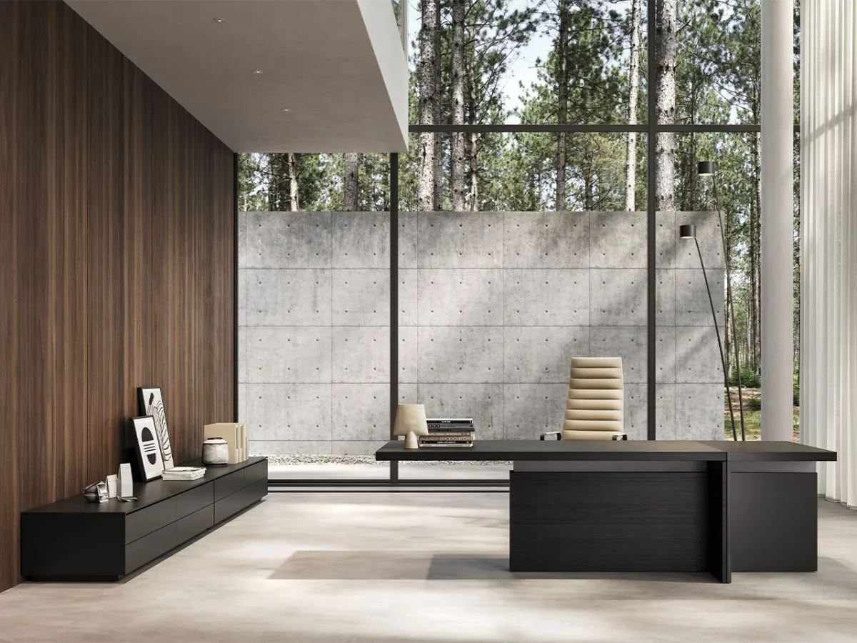 Nowadays, the boundary between private and working life spaces has become increasingly blurred. Furniture must, therefore, cope with the increasing dynamism of the manager’s daily life who, in his office, dedicates himself not only to work but also to different activities and experiences: he eats lunch, reads, gets ready to exercise, receives guests, colleagues or clients, etc.
