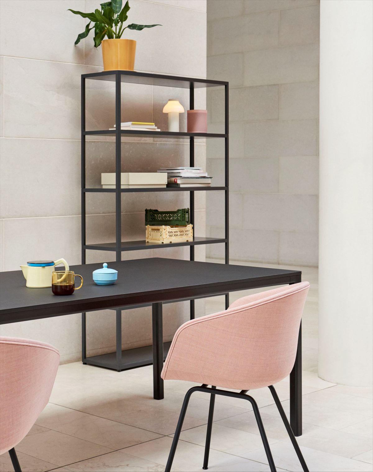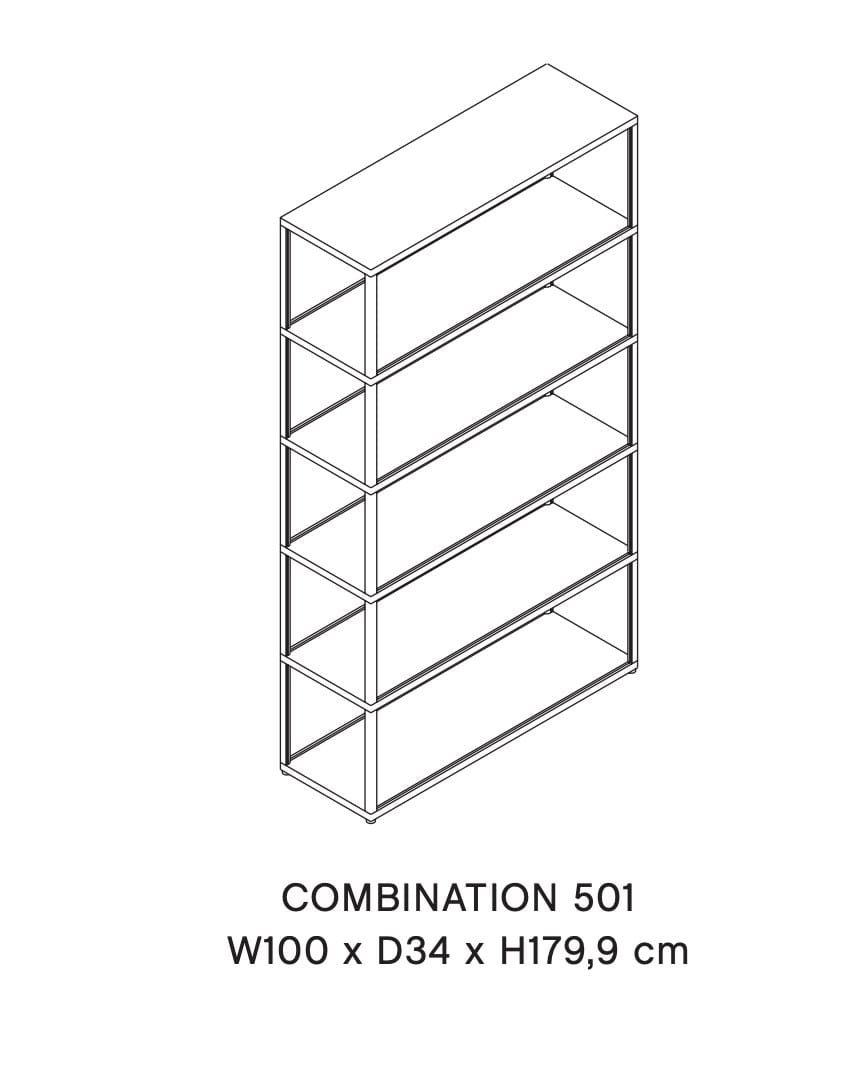 New Order Combination 501 has a simple, modular design, with its six-shelf structure offering a flexible bookcase for the home or office. The open multi-shelf design allows the user to display and organise a wide range of items, while providing easy access from all sides. The aluminium grid is available in several colour options, with the possibility of adding panels, doors, trays and drawers to customise its appearance and functionality, creating endless combinations and applications.