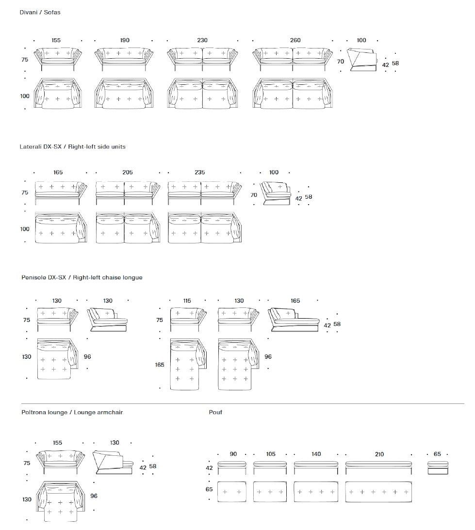 The new designs for the New York collection by Sergio Bicego still hold on to its core meaning made up of a contemporary soul and timeless spirit. New York Suite returns to the svelte silhouette featured in the entire range with extremely comfortable-looking large cushions with tailored finishes. The quilting of the cushions hints at a retro elegance and gives in to nostalgia in order to map out the design of the future. At the same time the metropolitan allure is heightened by the hexagonal shape of the frame which rests on slim feet in steel rod with possible personalisation, with black chrome, gloss chrome or white coated finish. New York suite is soft and welcoming also in the smaller versions such as the maxi lounge chair and the 155 cm sofa which seats two people comfortably and is particularly interesting for contract projects. A sofa which is not afraid of mixing up aesthetic genres, with a domestic elegance and an idea of the present as a fluid area between past and future.