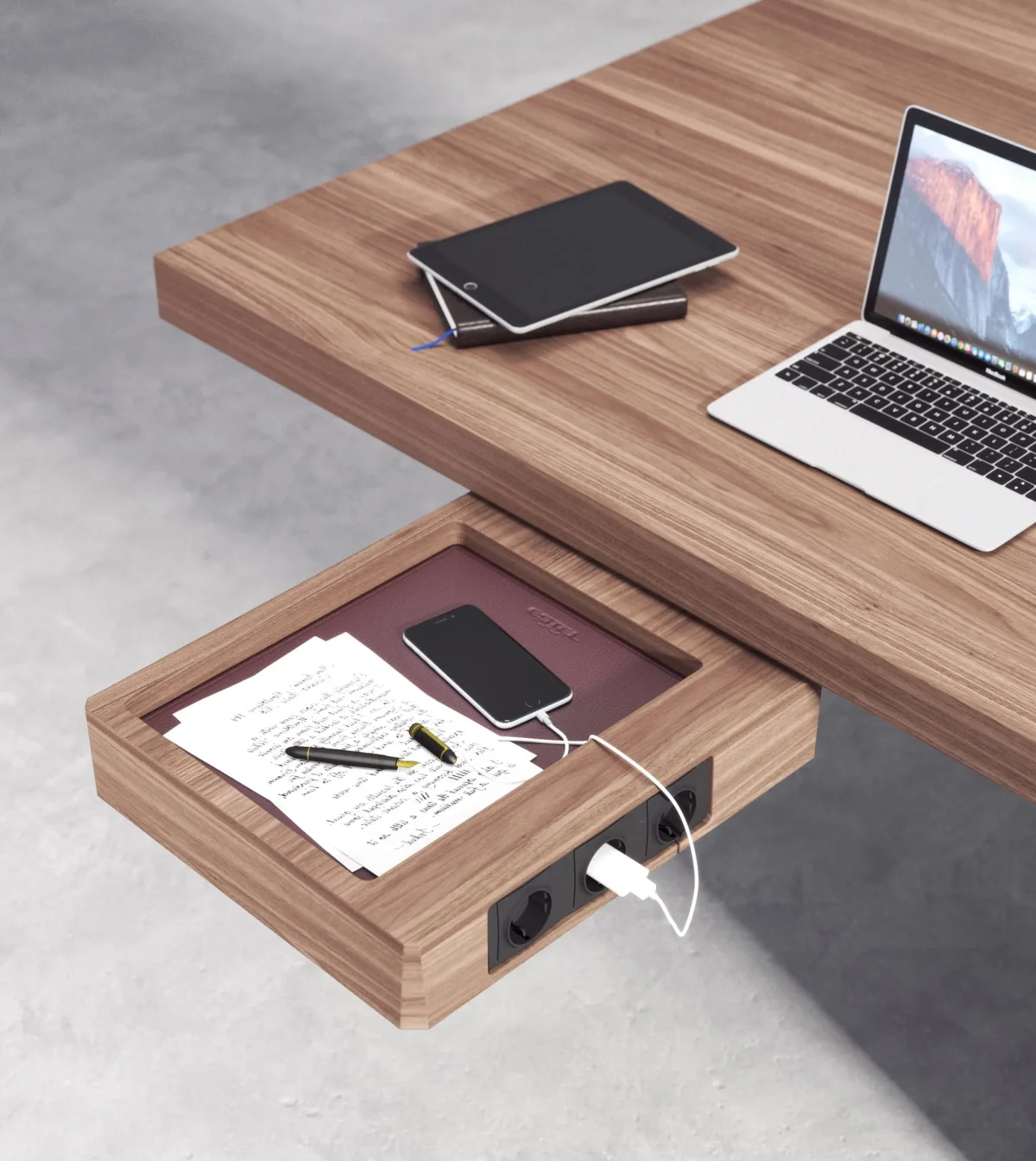 In addition to charging and feeding the drawer can be used to store sheets, pens or smartphones.
