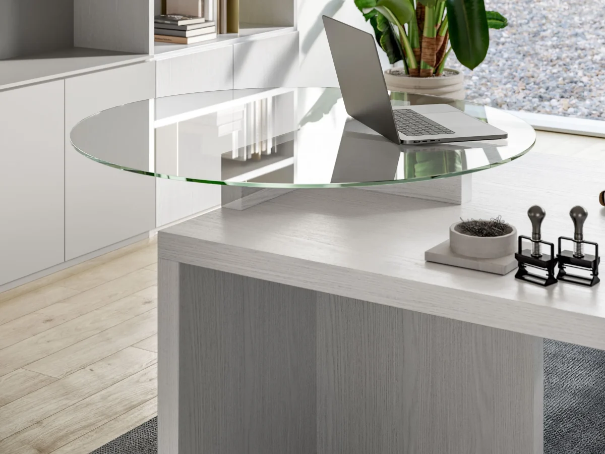 Giessegi’s standing executive desk has a structure that can be produced in the finishes White, Knotted Oak, Cloud Ash, Ash Wood and Teak or in the various standard lacquered colours.