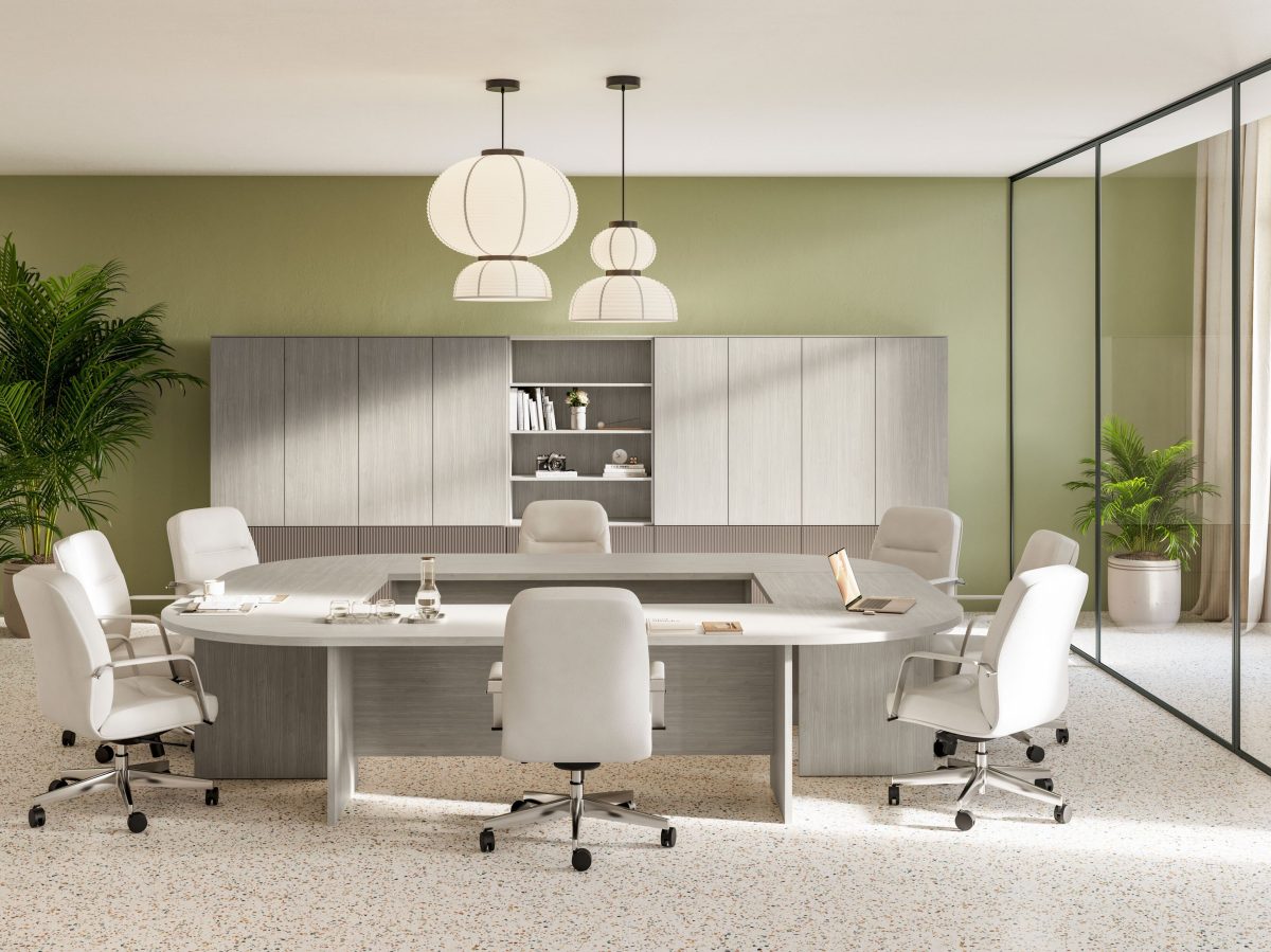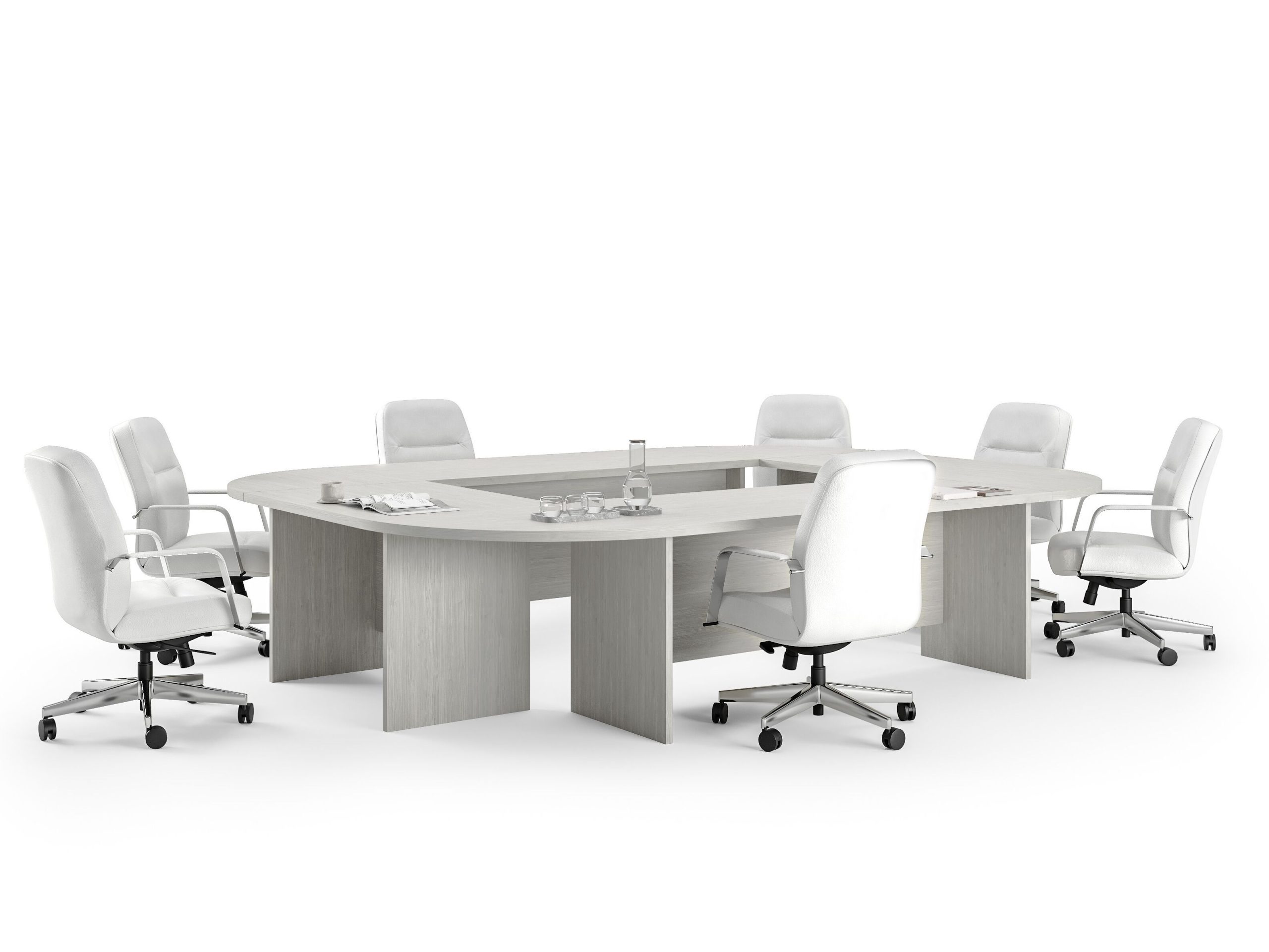 Giessegi’s wooden meeting/conference table has a top and base that can be produced in the finishes White, Knotty Oak, Cloud Ash, Ash Wood and Teak or in the various standard lacquered colours.
