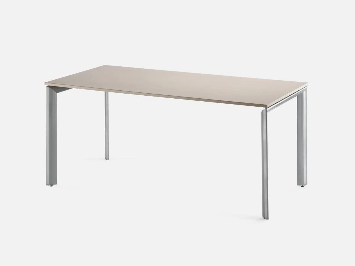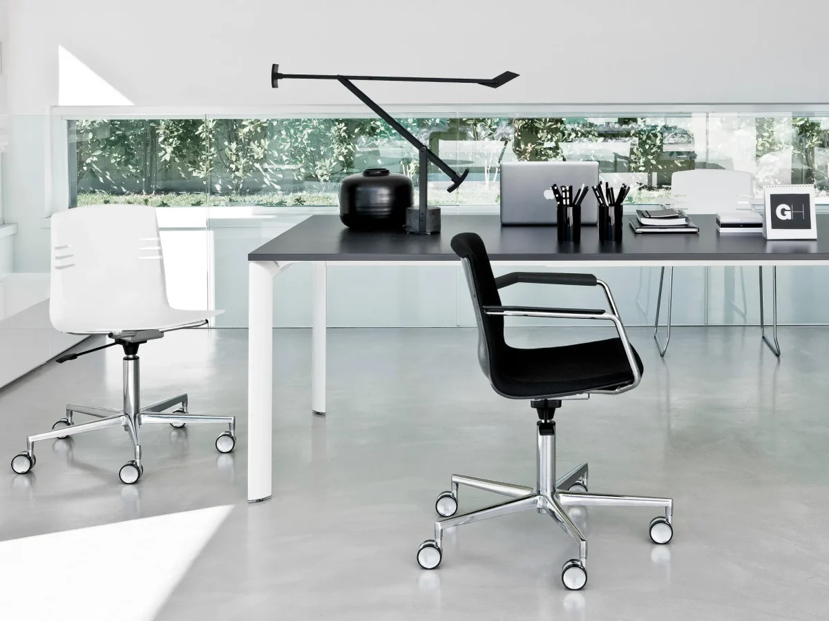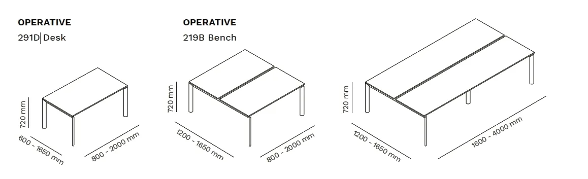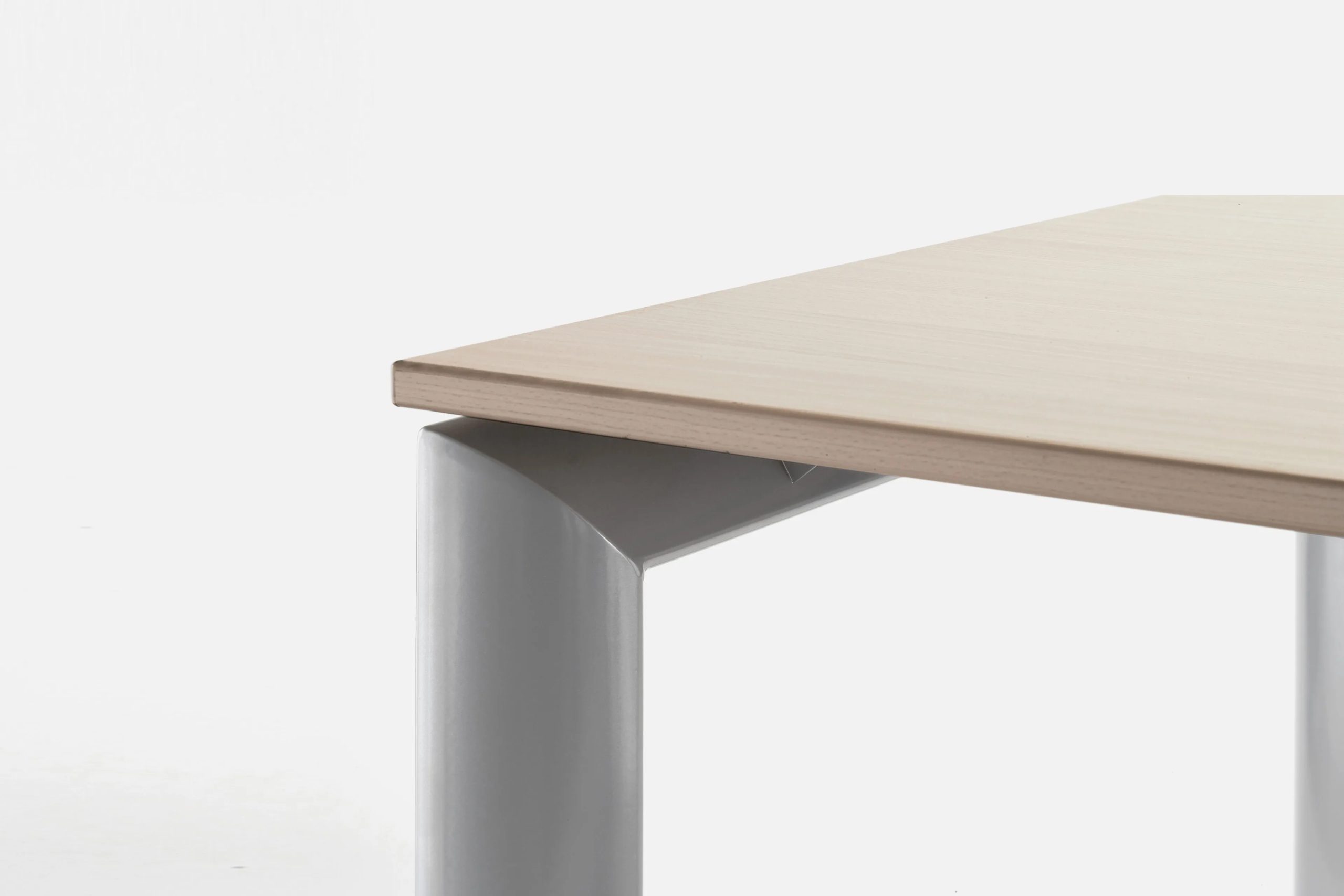 OPERATIVE is an innovative table with bench system designed for the office environment that allows the customization of the shape of the worktop according to the space. The beauty of the lines is given by the original combination of elliptical profiles manually welded on the corner of the side legs.