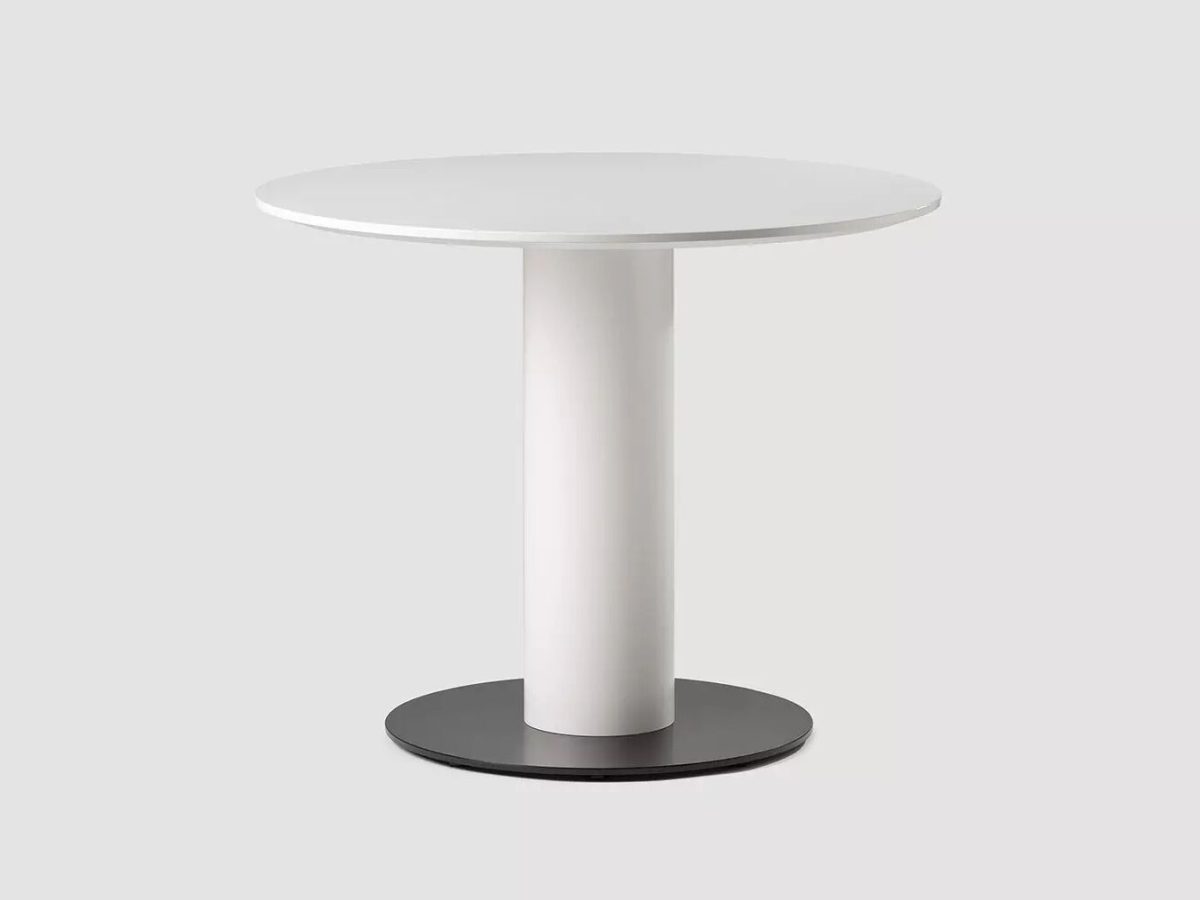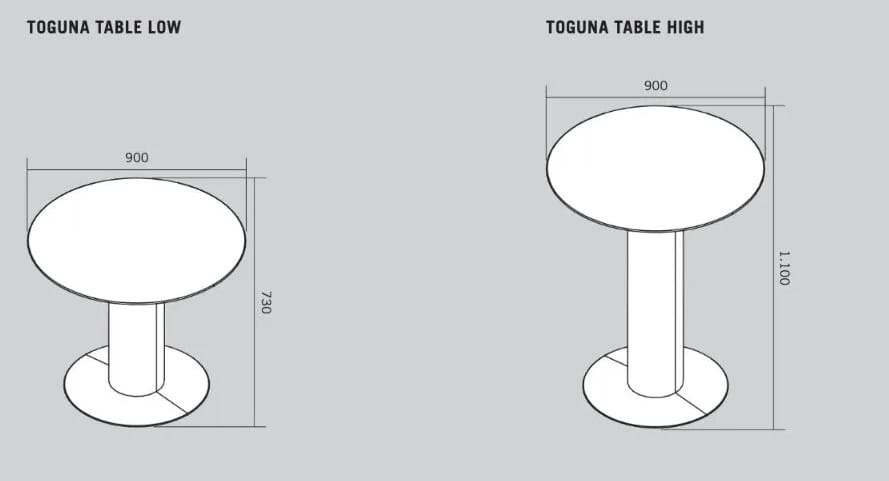 The functional side table for PARCS TOGUNA is available in two heights, for standing or sitting. The round 25mm table top with beveled edge is made of MDF lacquered in black or white. The plastic tube of the Toguna Table is lacquered in either black or white. The stability of the side table is provided by a base plate made of black powder-coated steel, 4mm thick with plastic glides.