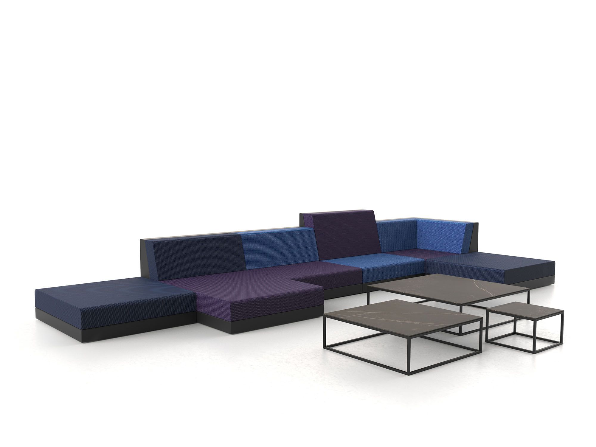 The PIXEL sofa is the centrepiece of this collection and is composed of three independent modules that allow you to create a wide variety of shapes. From linear sofas and chaise longue to cosy corners and even a bed, PIXEL adapts to your needs and your space, providing unique versatility. Its low seating is designed for intimate use, ideal for chill out and relaxation areas.