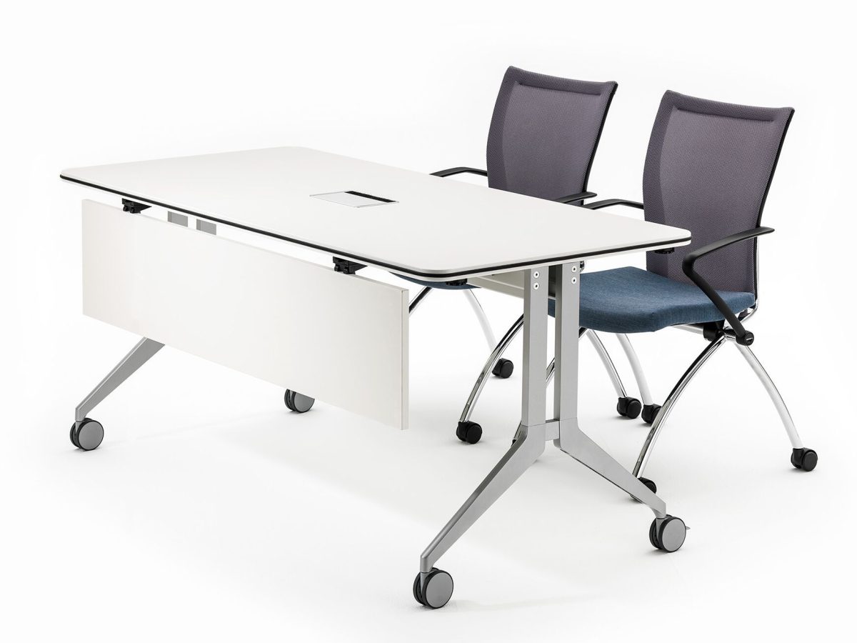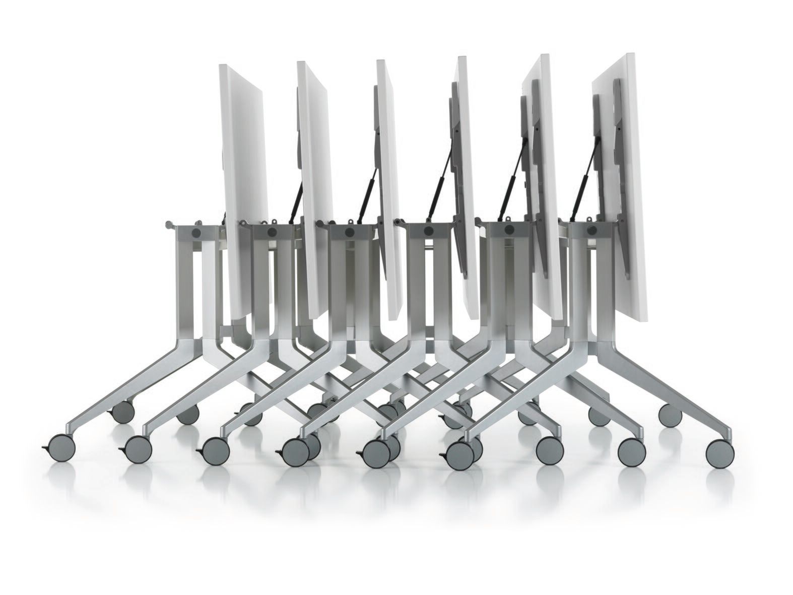 Planes tables support the needs of people as they move throughout the day. Designed as a global platform for individual workstations, training sessions, or collaborative interactions, Planes provides solutions that support productivity, ergonomics, and technology. Planes tables were designed with thoughtful cable management and power distribution, along with elegantly integrated reconfiguration capabilities. The focal product within this range is the mobile flip-top table, providing the ideal solution for easily reconfigurable areas and space saving storage. The static table is also very quick and easy to assemble and re-arrange featuring a very simple leg connection. Whether for training seminars, meetings or conferences, Planes provides the solution. The range includes storage shelf units, carts, sideboards, lecterns, flip charts and whiteboards. Many elements are available in either mobile or static versions and in a variety of sizes.