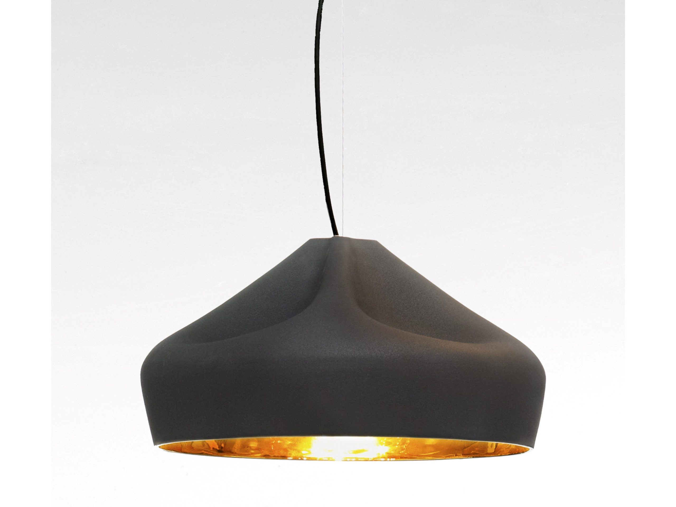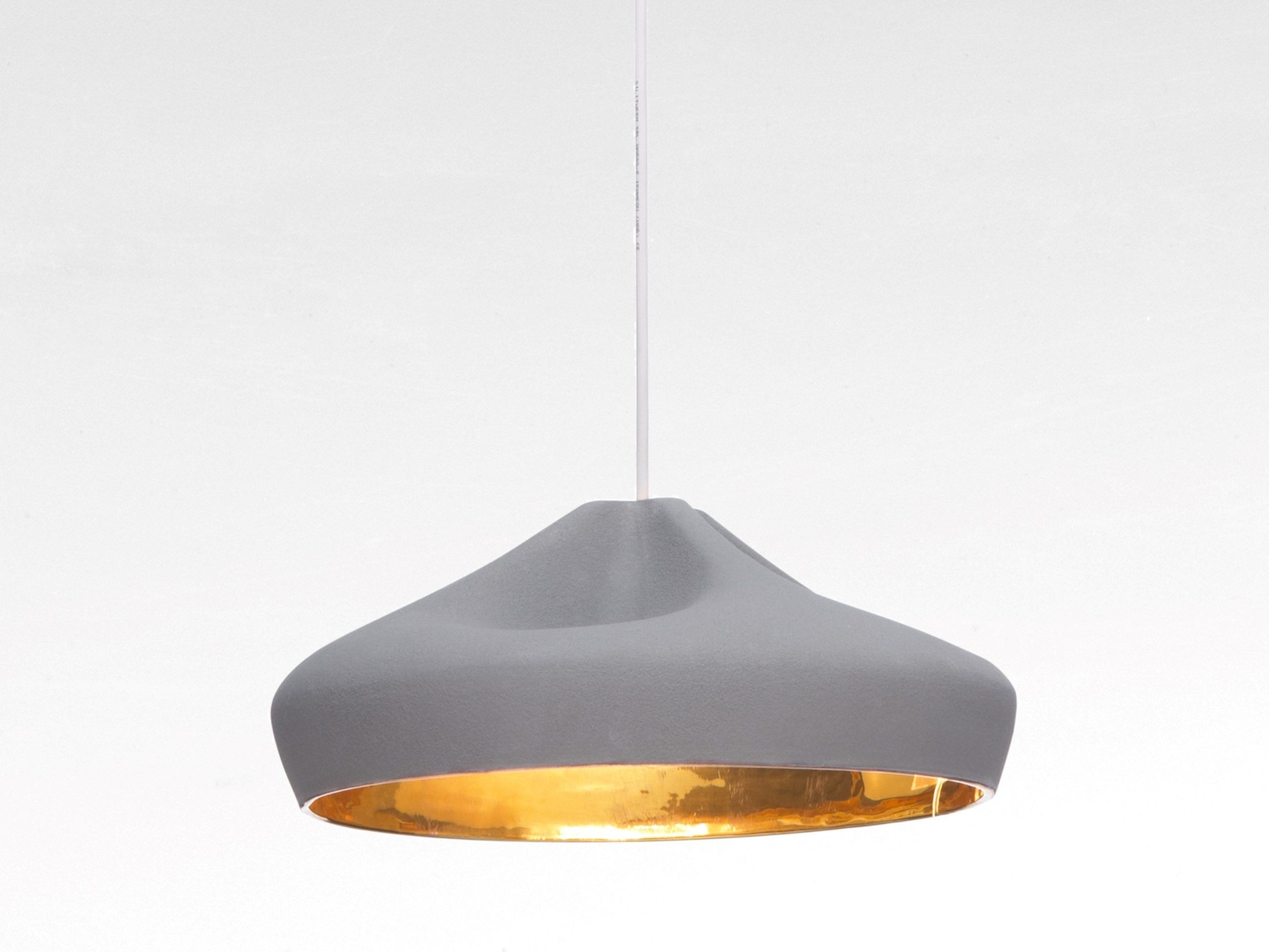 PLEAT BOX 36-47 is a LED ceramic pendant lamp with fabric cord. Ceramic is a ductile, malleable material which can be manipulated to ensure each product is unique. Fusing the clay with different enamels has allowed Xavier Mañosa to discover and interpret new light effects. So much so that the brilliant white enamel indoor version creates sparkles that enhance the light, while the 24-carat gold plated version emits an extraordinarily warm light. The outside of the lamp is available in ceramic white, black, terracotta and grey.
