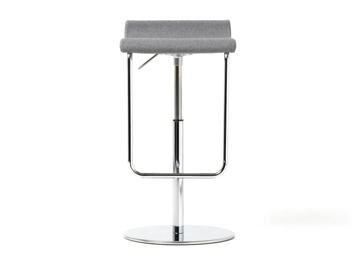 Prince is a Stool with soft and sinuous lines, with beech ply shell with high or low back, upholstery in leather or fabric. Gas-lift and round chromed base with steel tube footrest.