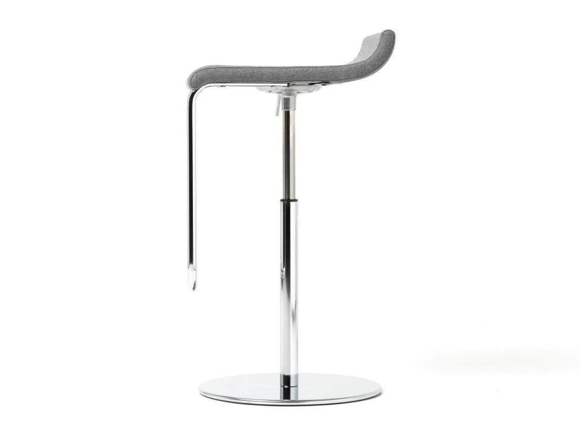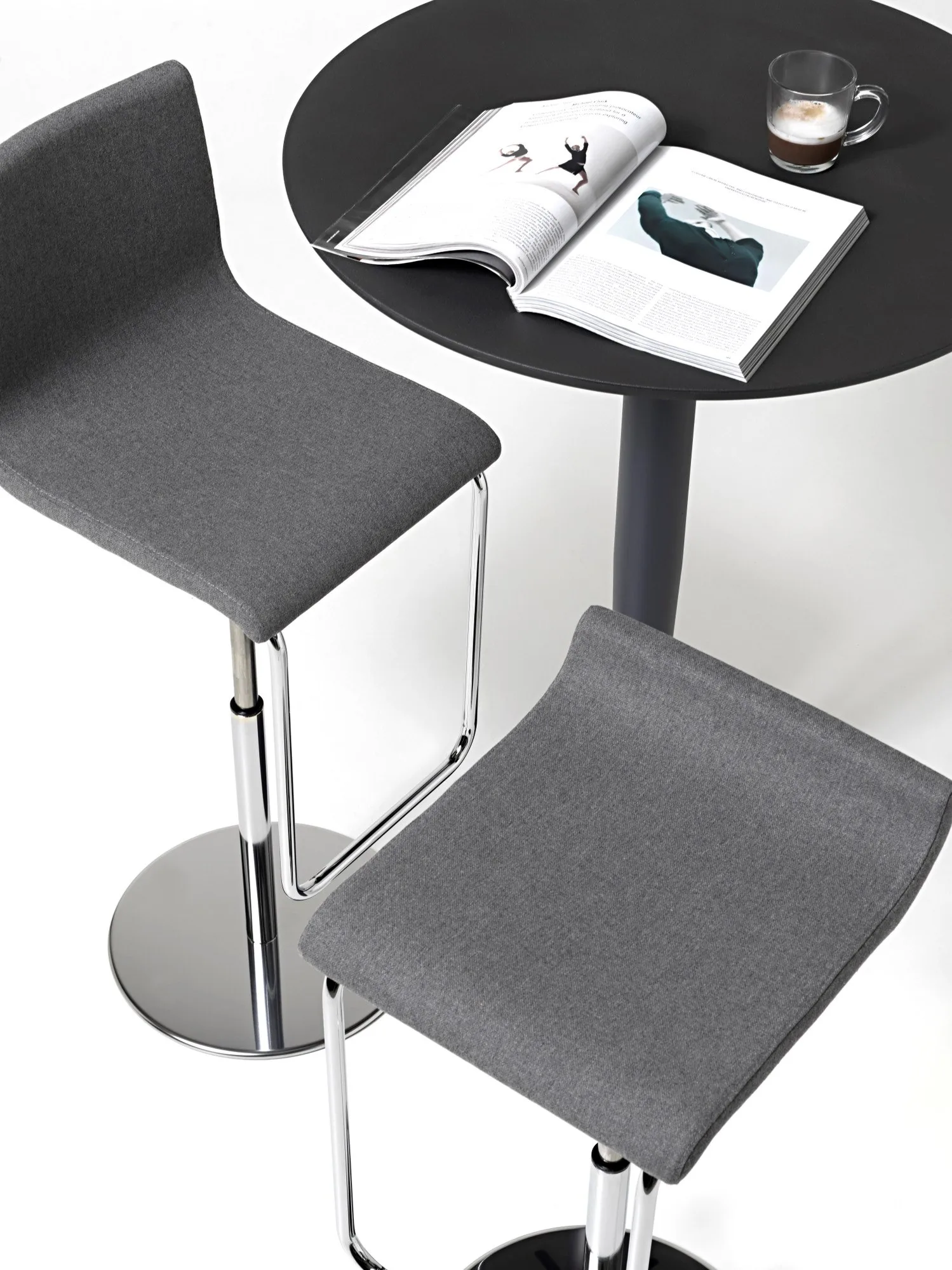 The seat is height-adjustable to adapt to all kinds of worktops. The chromed footrest gives symmetry to the soft outline both in versions with high and low backrest. Even the low-back seat assures a degree of posture through its slight and elegant tail-lift.