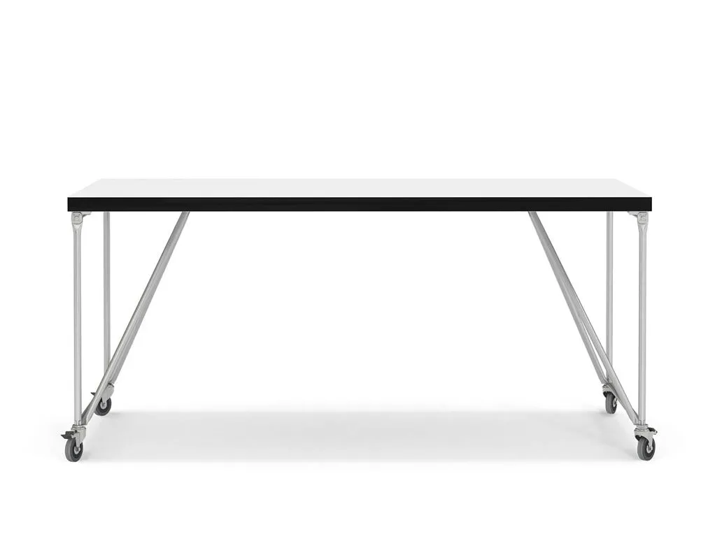 The cleverly simple screw foot can compensate for any unevenness on the floor and the table height can be adjusted between 72 and 76 cm. They are optionally available on casters instead of the standard screw feet. As a high table on casters, the H RackPod provides a flexible meeting point for team assemblies or a smart stand-up workspace for office or home.