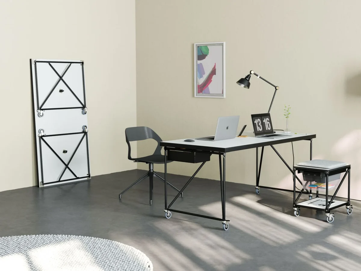 The modern working environment is constantly changing, and inflexible furniture can be a hindrance to that change. With the RackPod series of folding tables, System 180 has developed a range of tables at sitting and standing height that provides the required flexibility. Lightweight, functional and equipped with all sorts of practical accessories, the RackPod series tables are highly versatile.