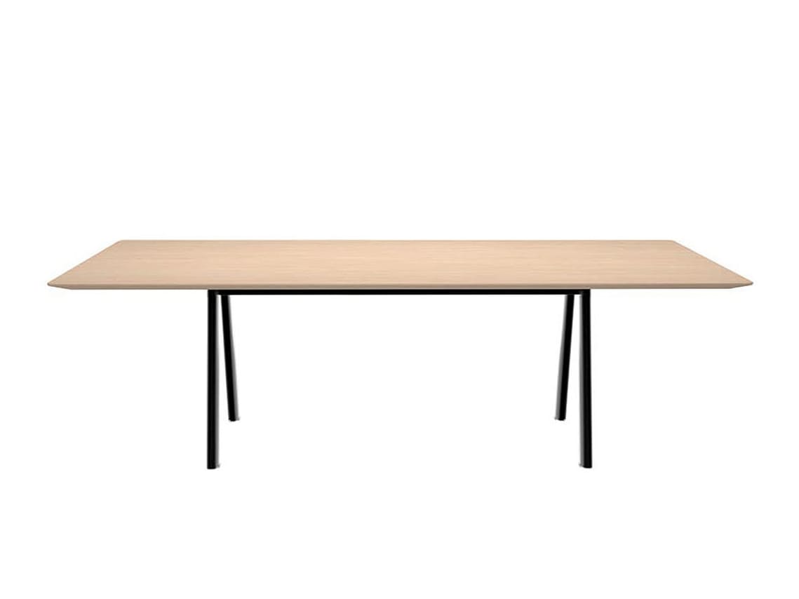 RADIAL CONFERENCE ME9024 is a table with beveled edge profile oak board table top and aluminum legs.